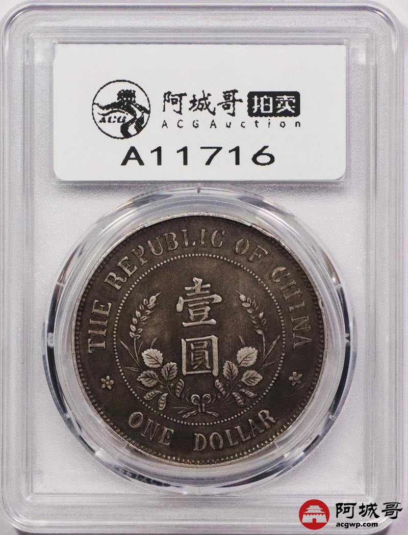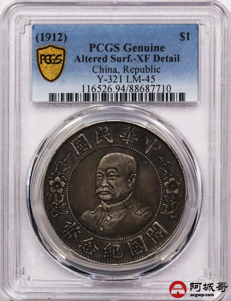 Lot:3237 1912黎元洪像无帽开国纪念壹圆银币一枚,原味酱味包浆 PCGS XF
