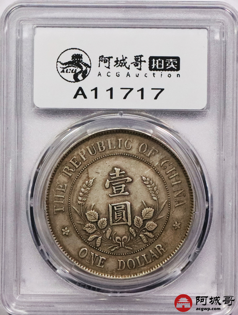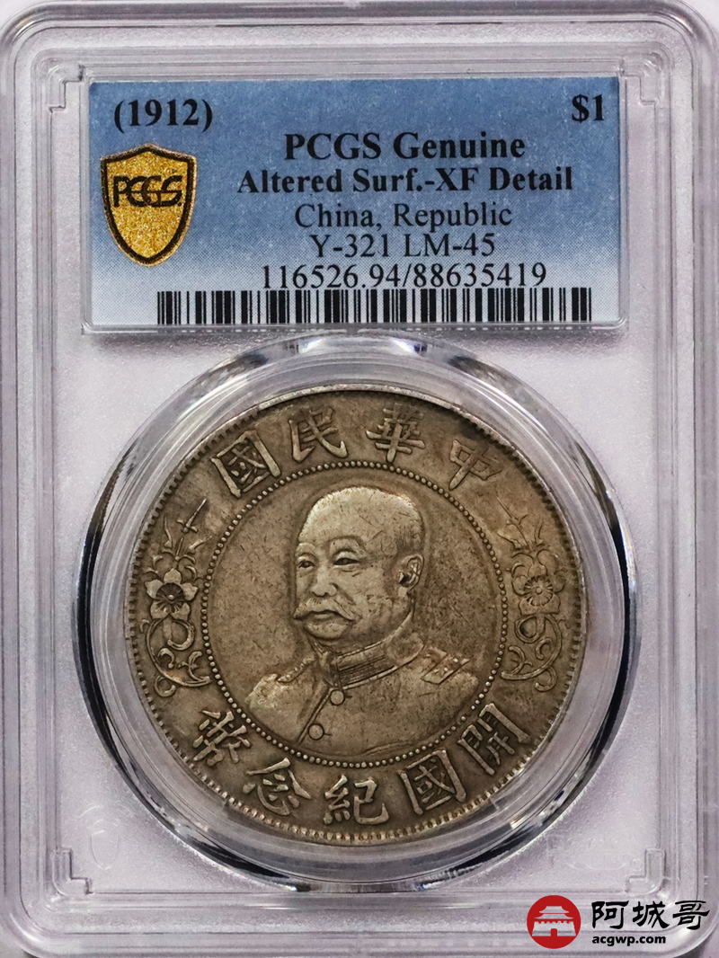 Lot:3238 1912黎元洪像无帽开国纪念壹圆银币一枚,原味包浆 PCGS XF