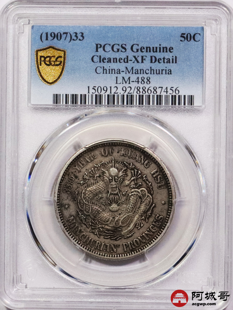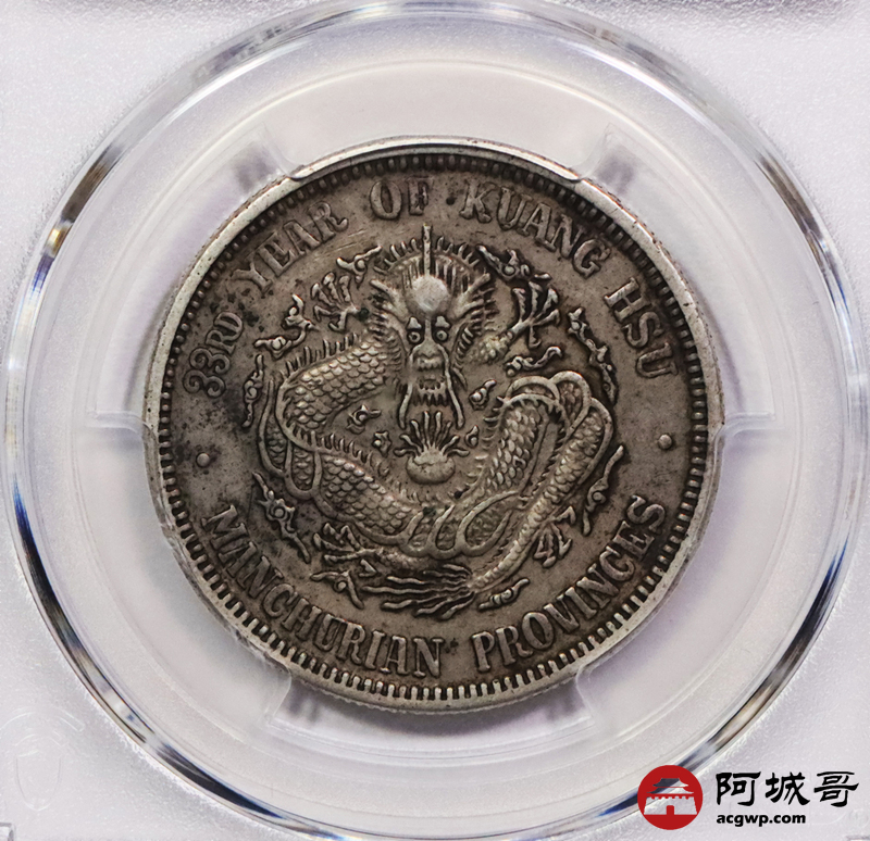 Lot:3235 1907东三省造光绪元宝库平三钱六分银币一枚,深打原味老包浆 PCGS XF