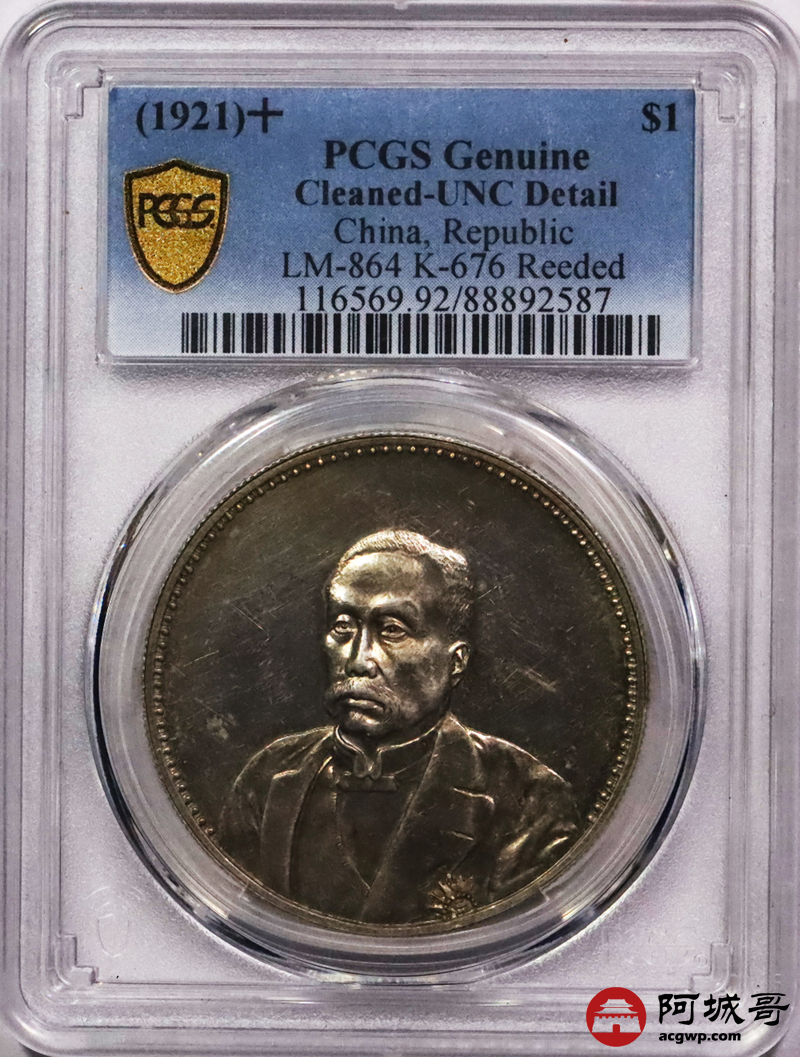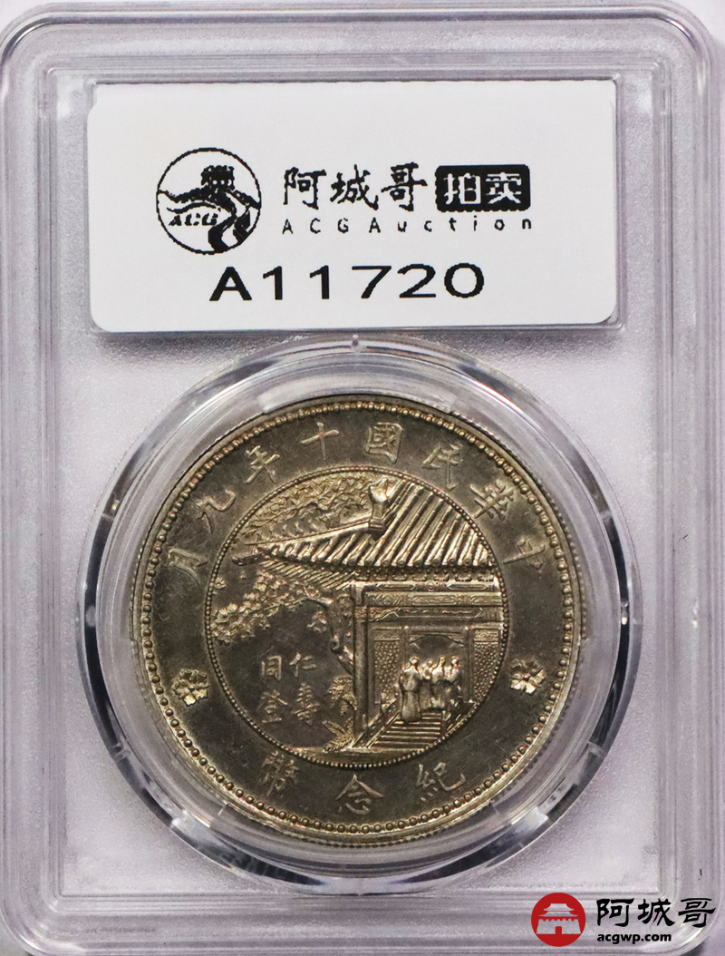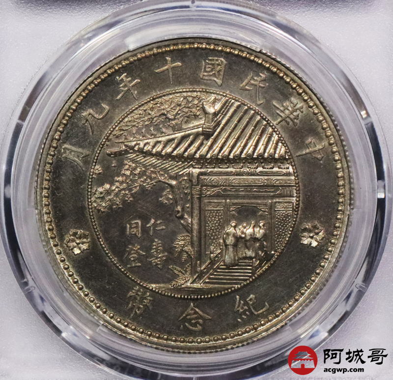 Lot:3241 1921民国十年九月徐世昌像仁寿同登纪念壹圆银币一枚,镜面黄油底板,打制压力十足 PCGS UNC