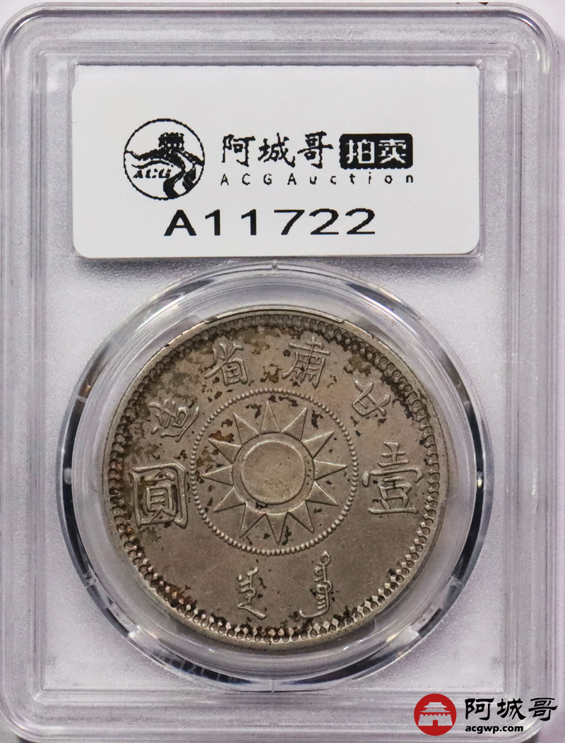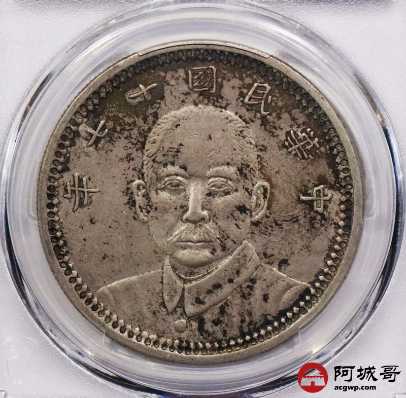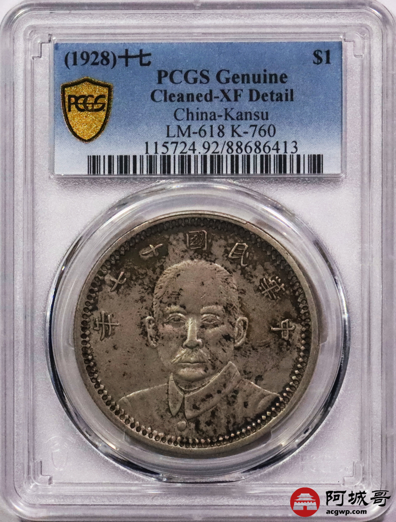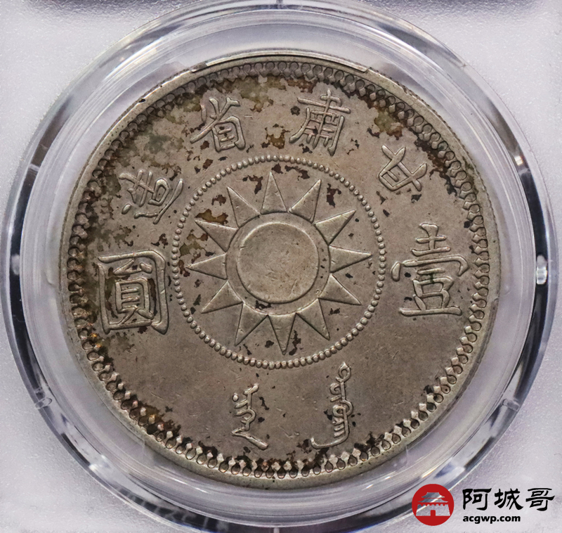 Lot:3243 1928民国十七年孙中山像甘肃省造壹圆银币一枚,原味五彩底板,铸打深俊,保存完好 PCGS XF