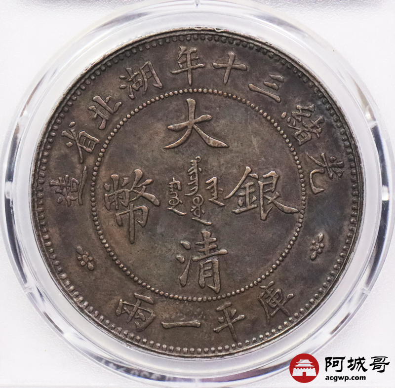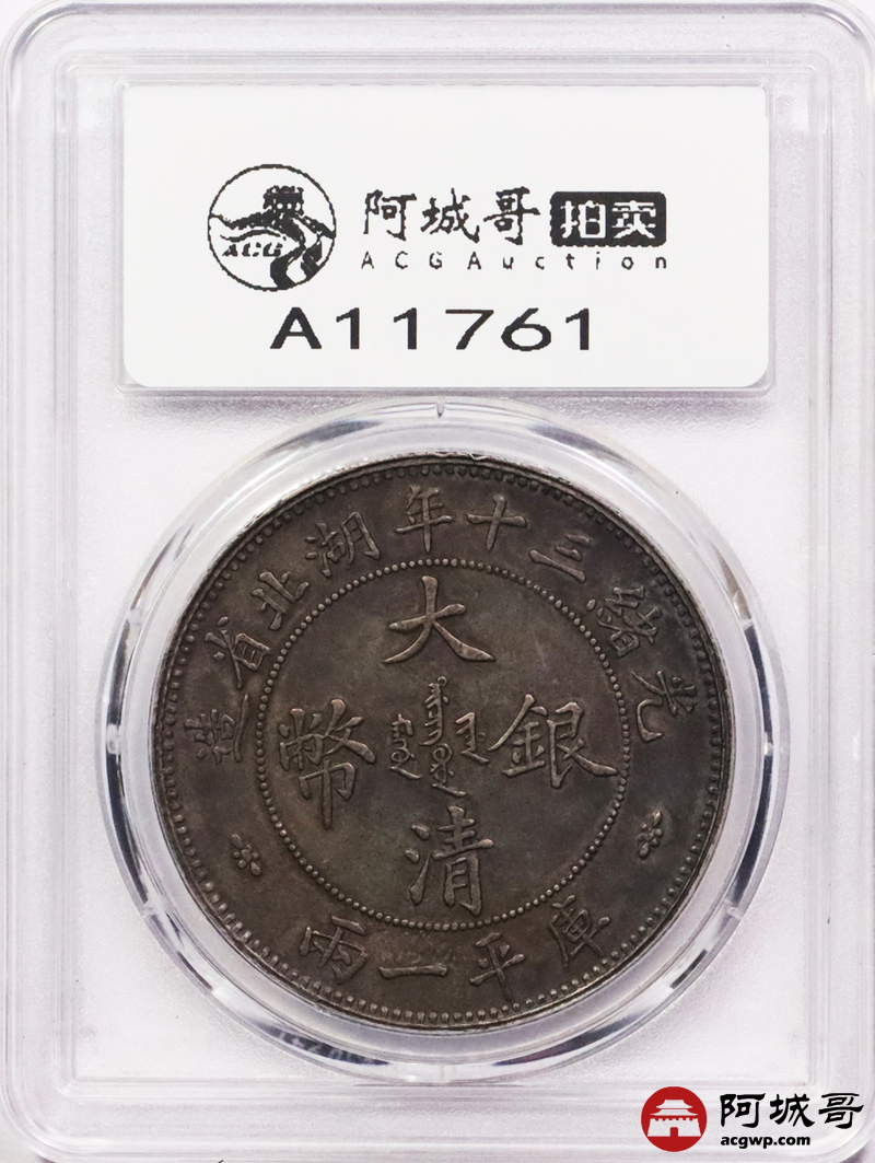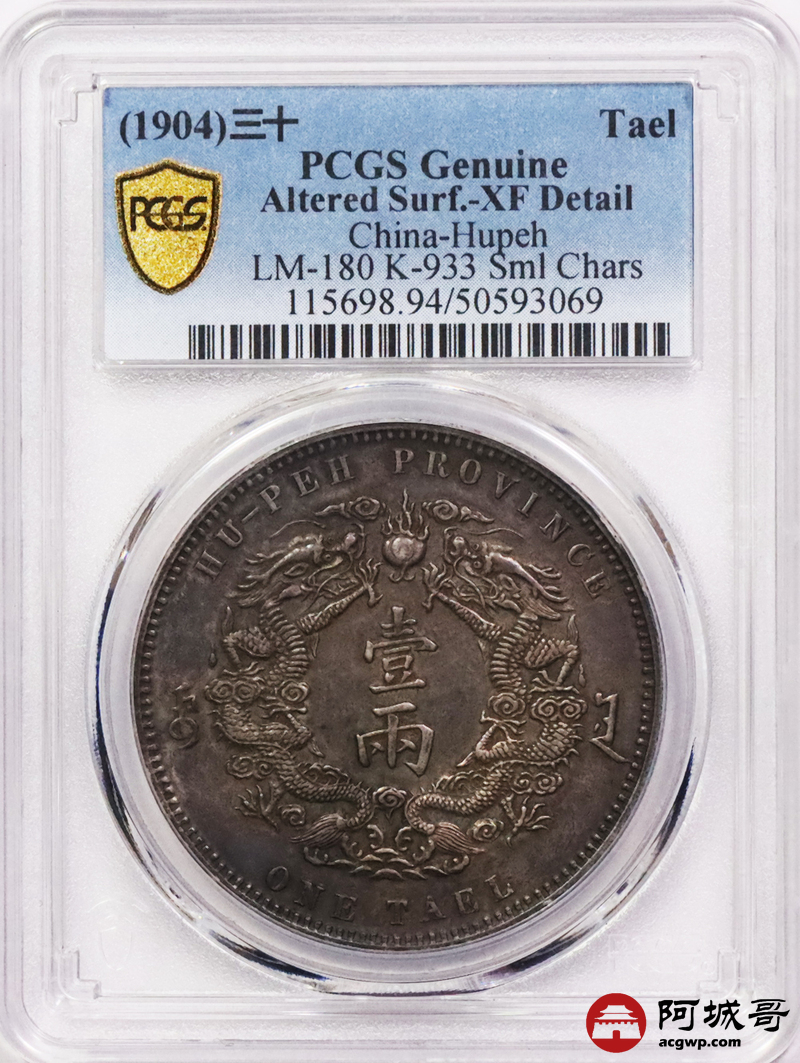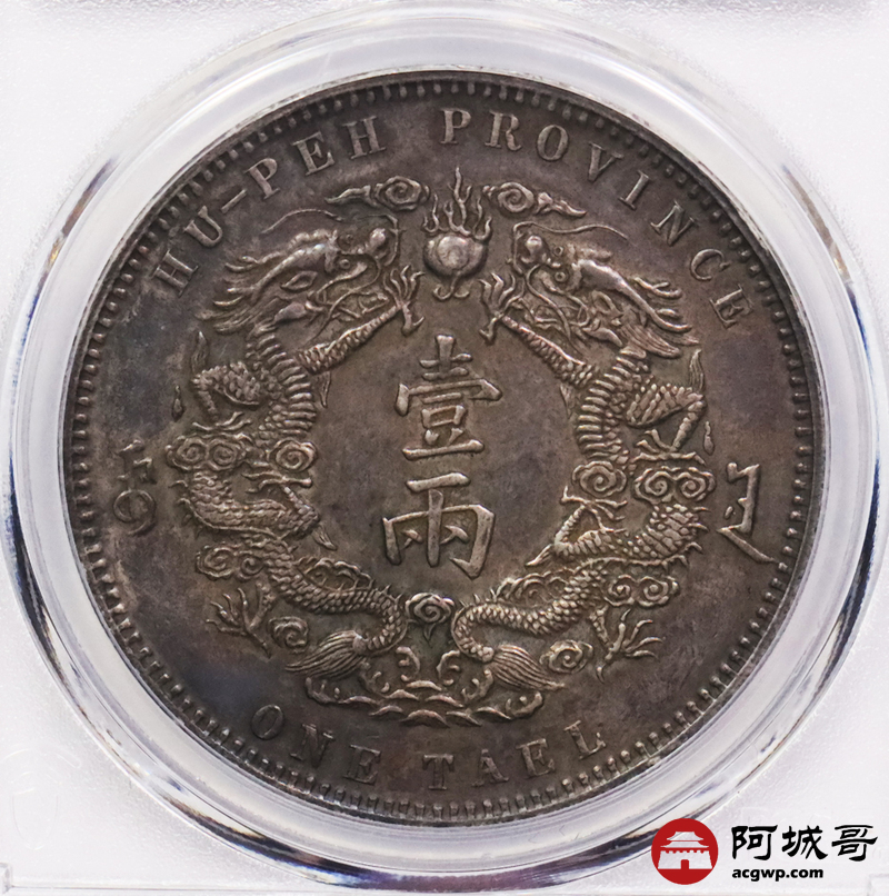Lot:3234 1904光绪三十年湖北省造大清银币双龙一两银币一枚,小字版,龙鳞饱满全深打,通透酱彩底板,味道十足 PCGS XF