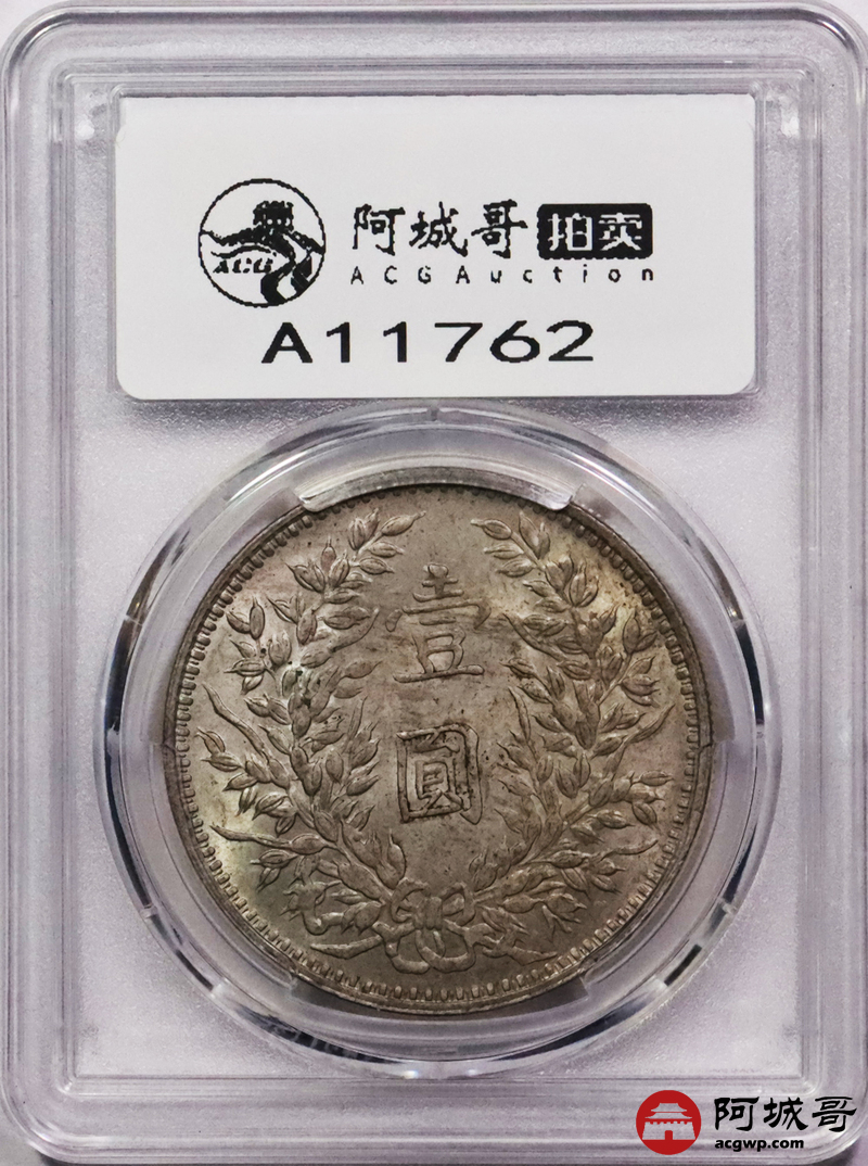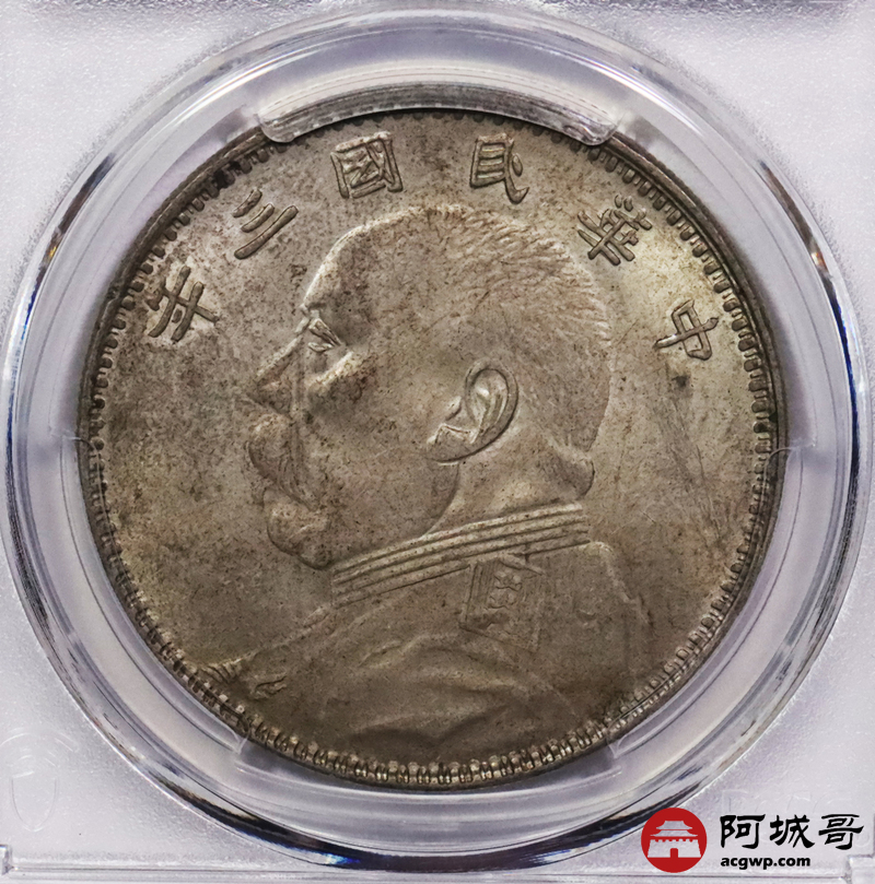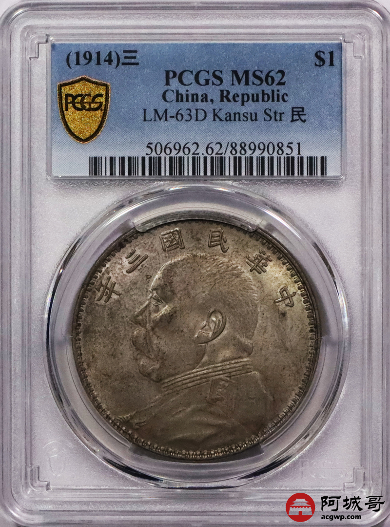 Lot:3247 1914民国三年袁世凯像壹圆银币一枚,甘肃精发大扣版,黄油原味底板 PCGS MS62