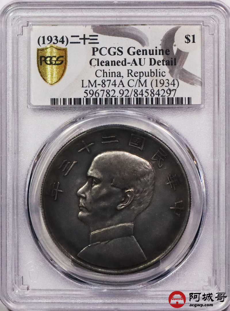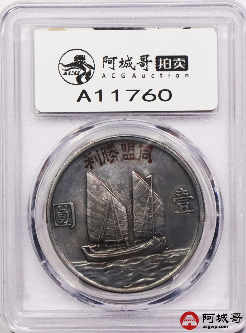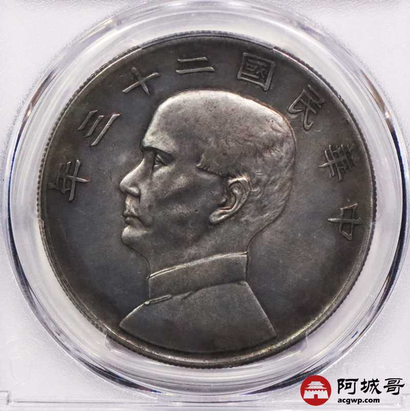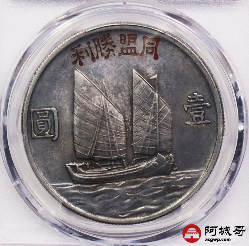 Lot:3245 1934民国二十三年孙中山像背帆船壹圆银币一枚,同盟胜利,枪灰色包浆 PCGS AU
