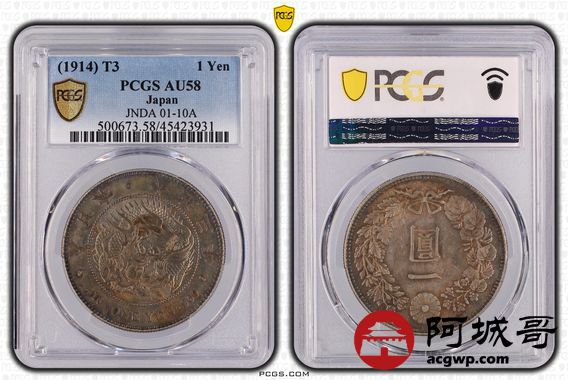 Lot:34 转光五彩日本大正三年壹圆 PCGS AU58