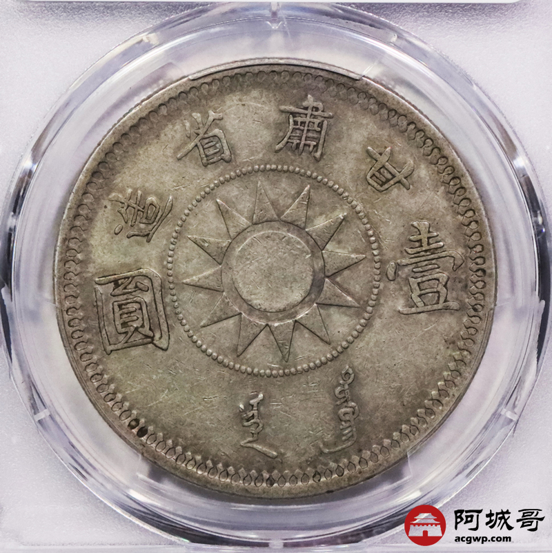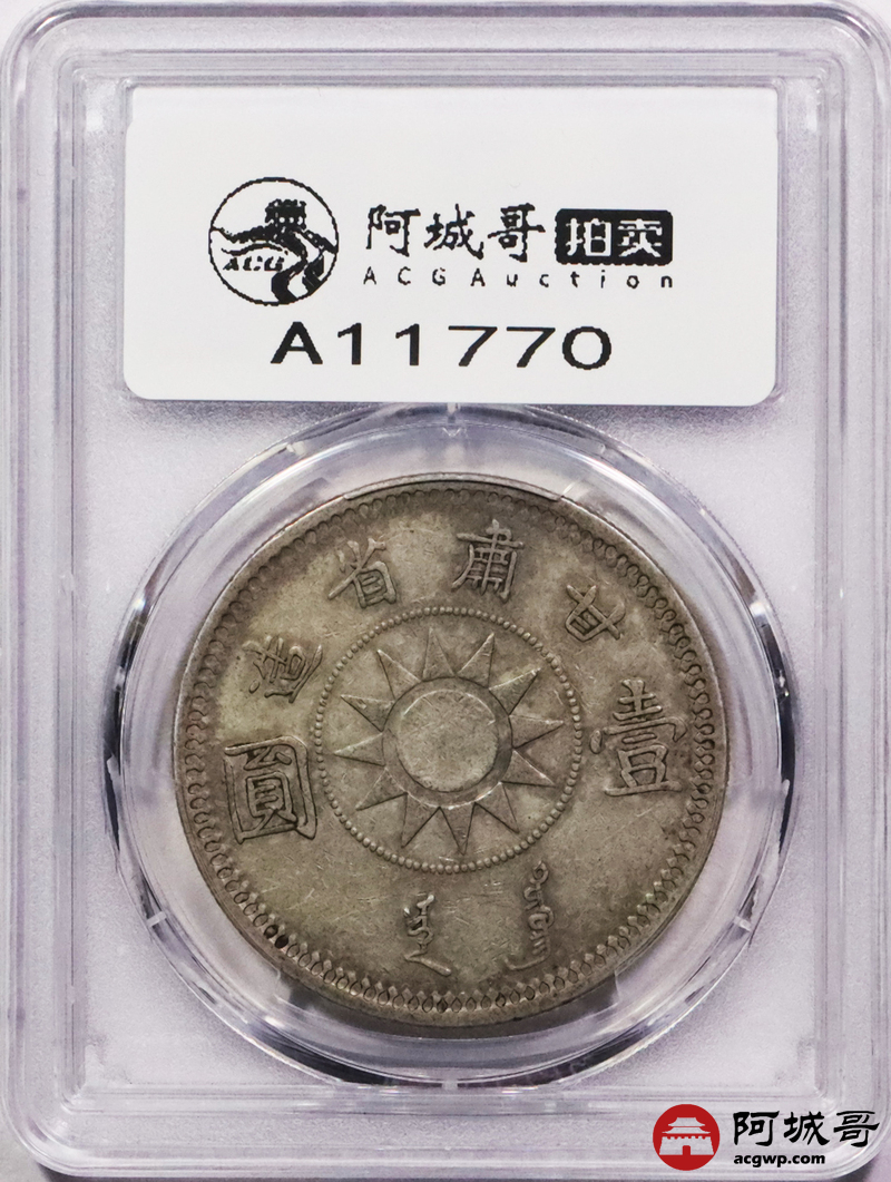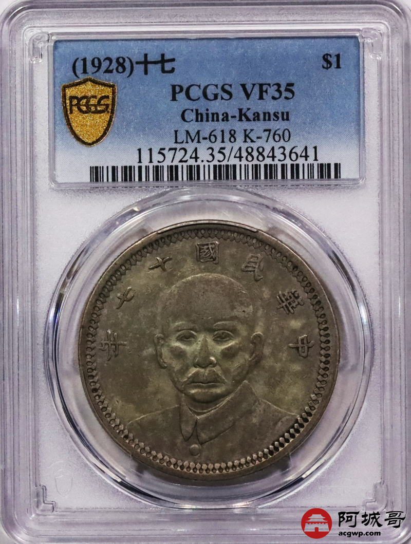 Lot:3178 1928民国十七年孙中山像甘肃省造壹圆银币一枚,原汁原味,老包浆,味道舒服 PCGS VF35