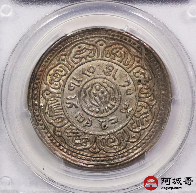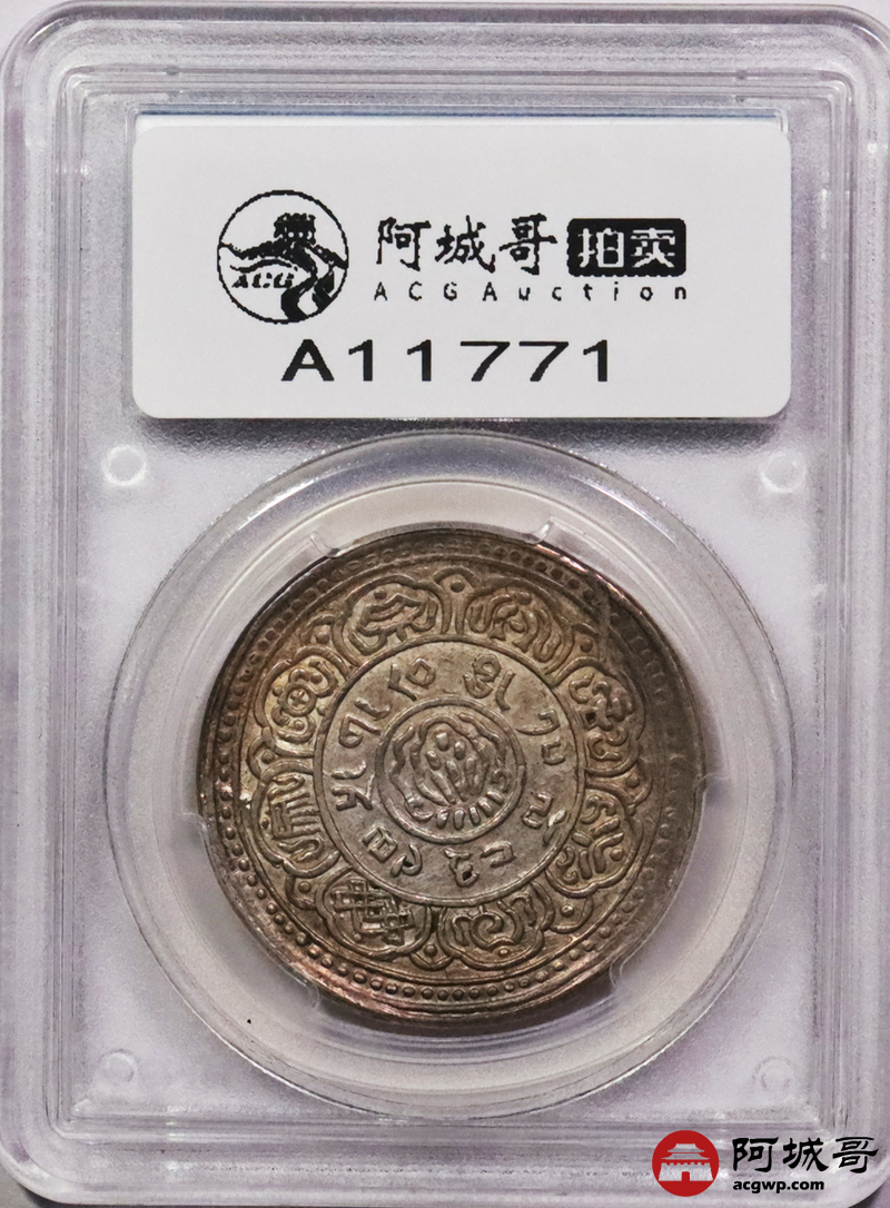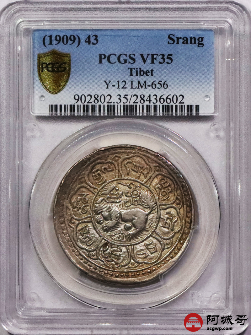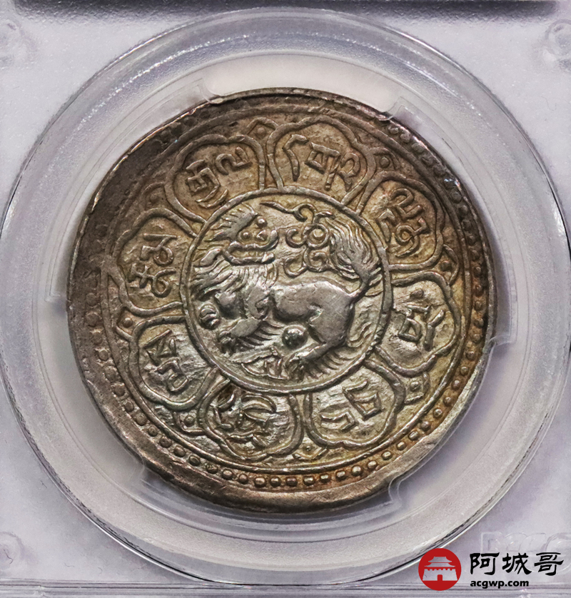 Lot:3460 1909/15-43西藏宣统大狮子桑康果木一两银币一枚,五彩包浆 PCGS VF35