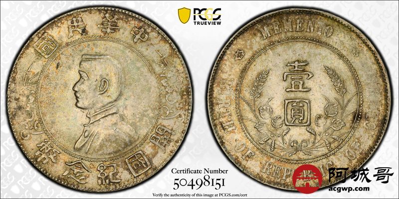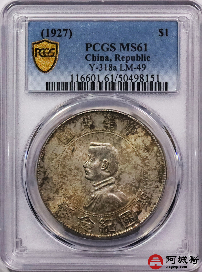 Lot:24 五彩转光 孙像小头壹圆 PCGS MS61