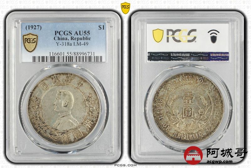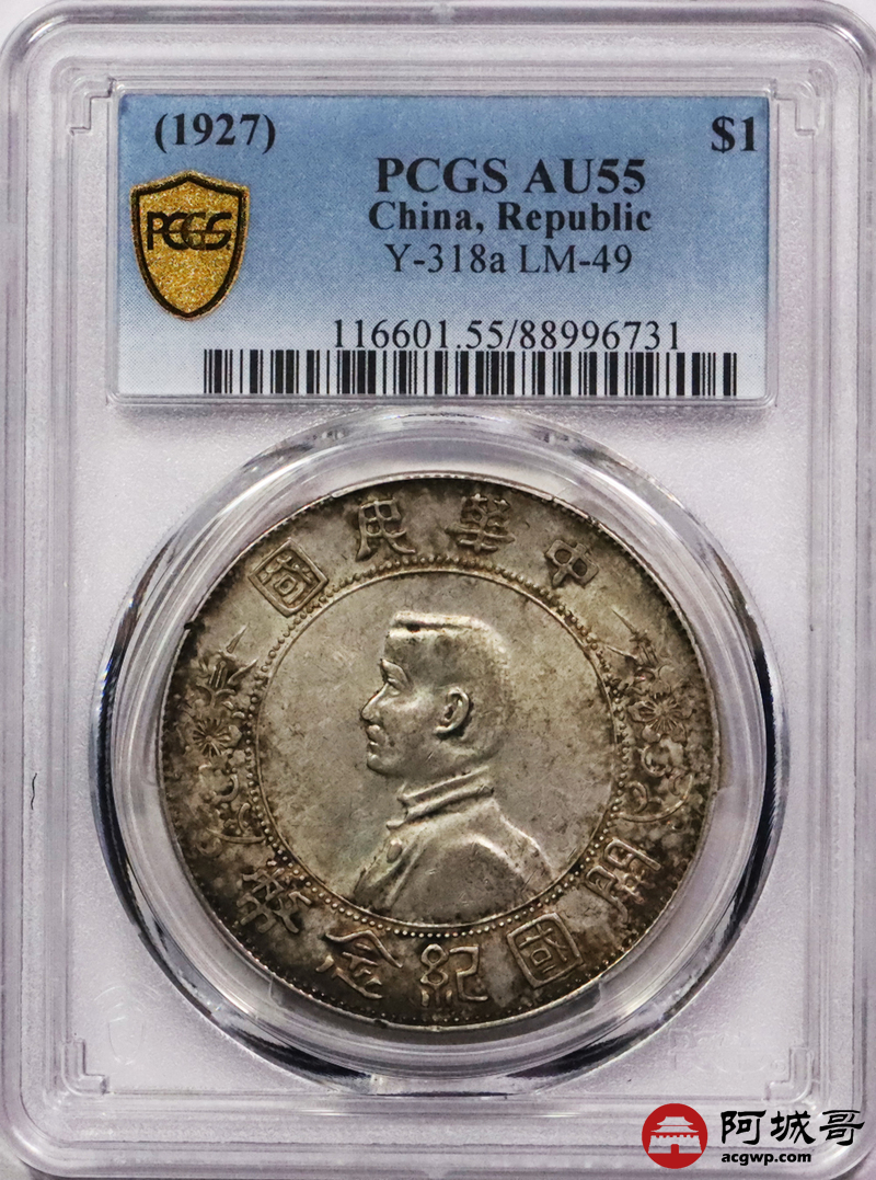 Lot:29 五彩转光 孙像小头壹圆 PCGS AU55