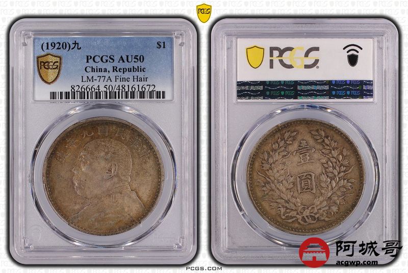 Lot:23 原味黄油彩 九年精发壹圆 PCGS AU50