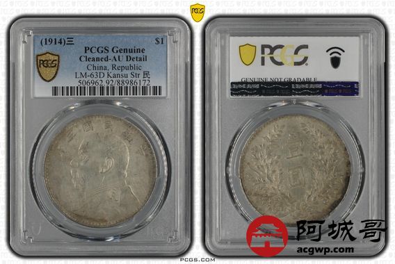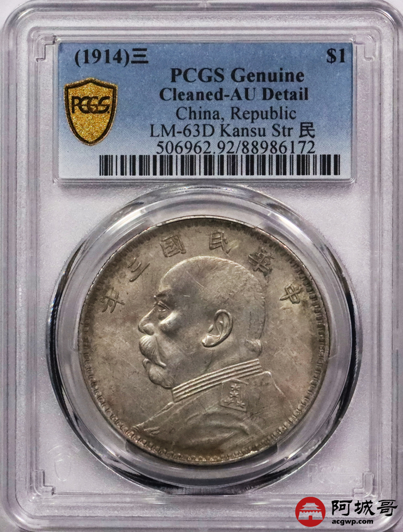 Lot:3 深打底光 三年大头甘肃版 PCGS AU
