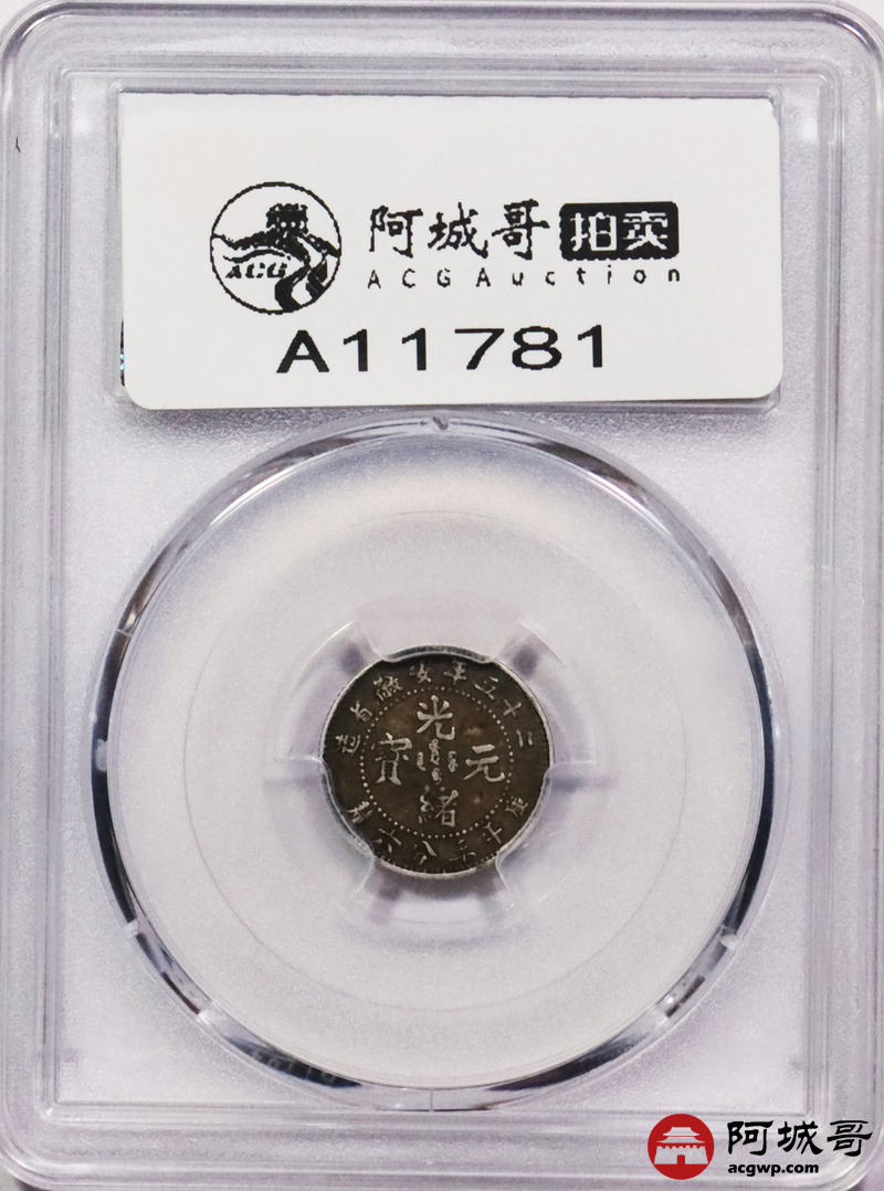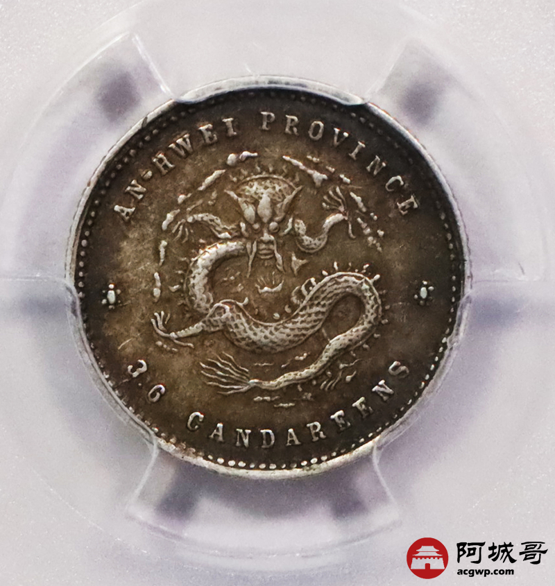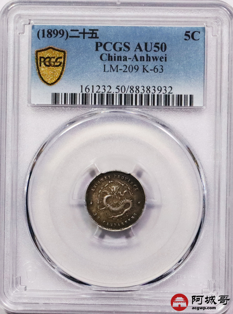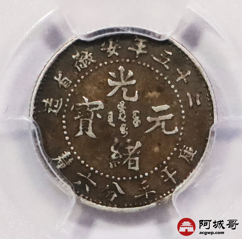 Lot:3593 1899二十五年安徽省造光绪元宝库平三分六厘银币一枚,酱彩包浆 PCGS AU50