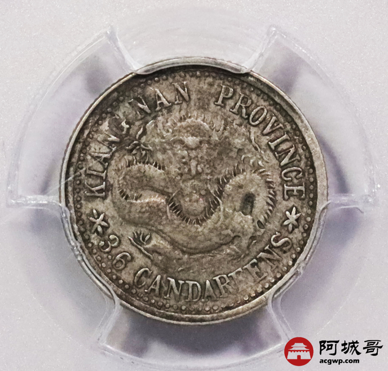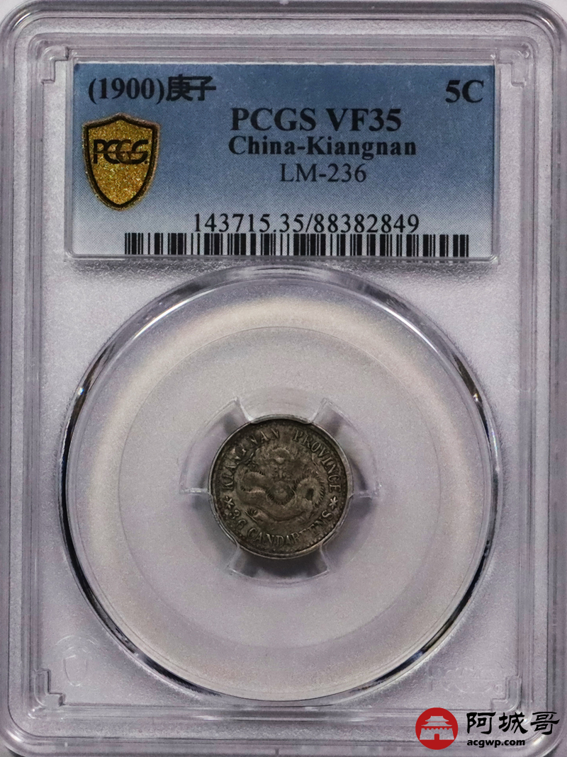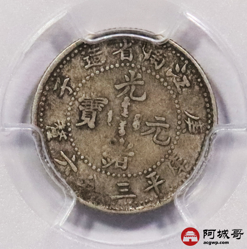 Lot:3596 1900庚子年江南省造光绪元宝库平三分六厘银币一枚,原味 PCGS VF35