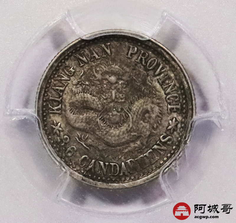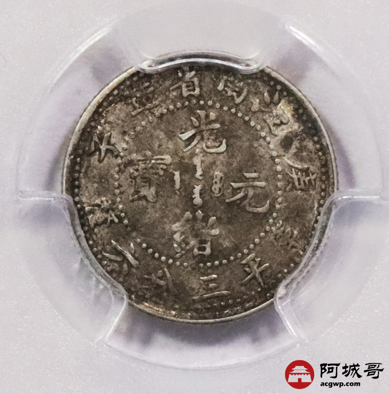 Lot:3595 1900庚子年江南省造光绪元宝库平三分六厘银币一枚,原味 PCGS AU50