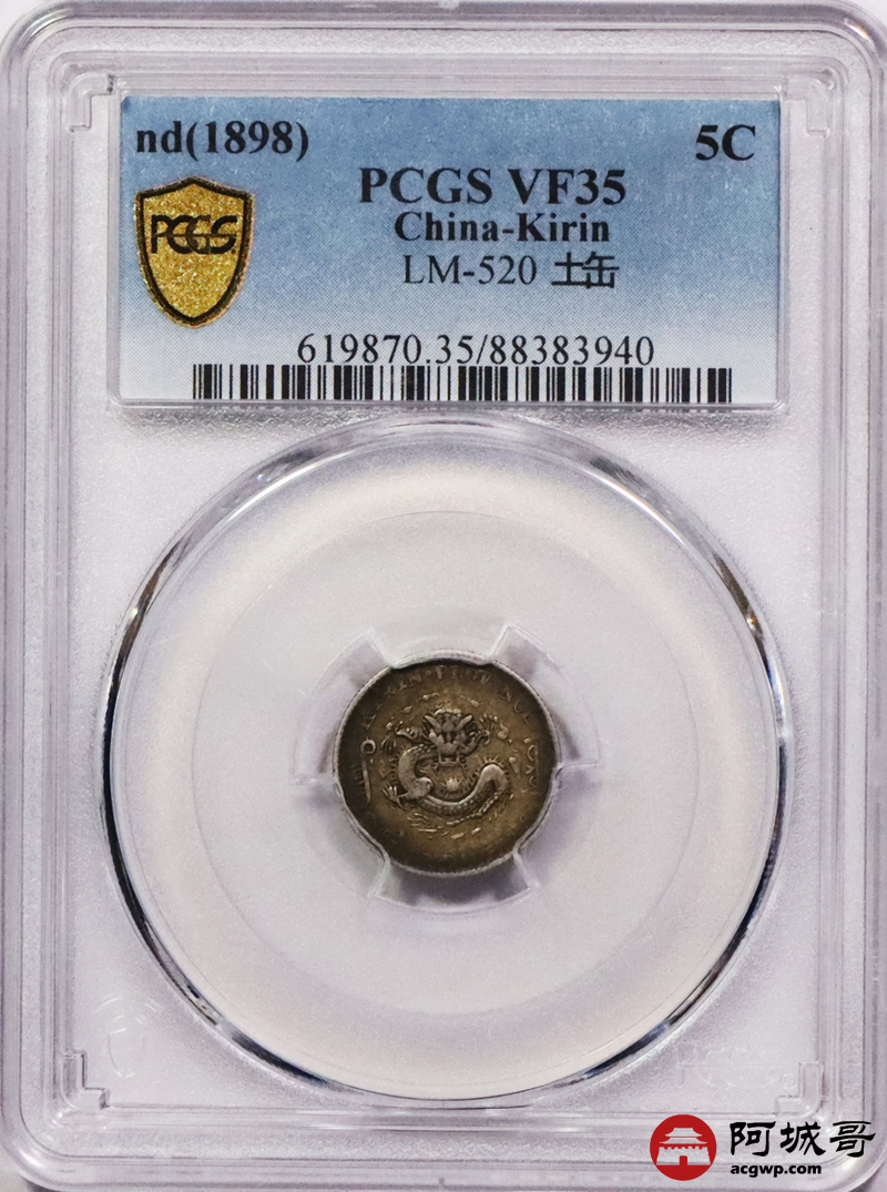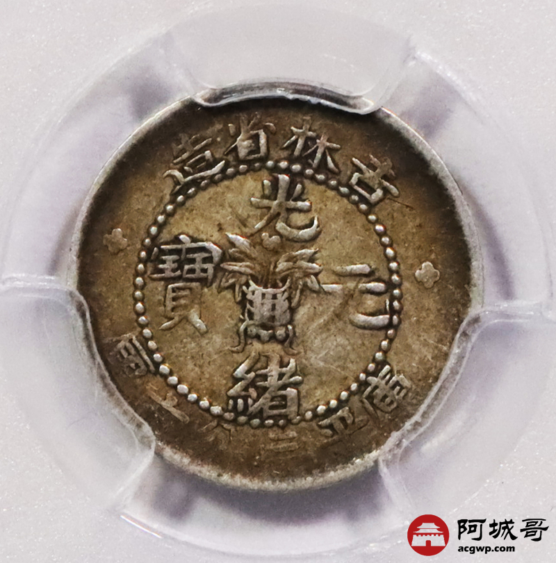 Lot:3589 1898吉林省造光绪元宝库平三分六厘银币一枚,五彩包浆 PCGS VF35