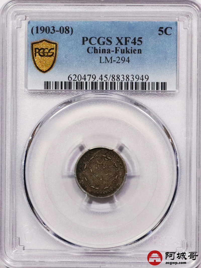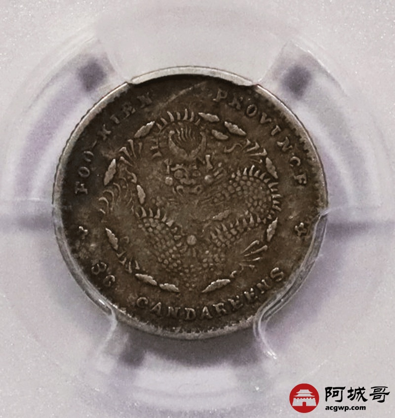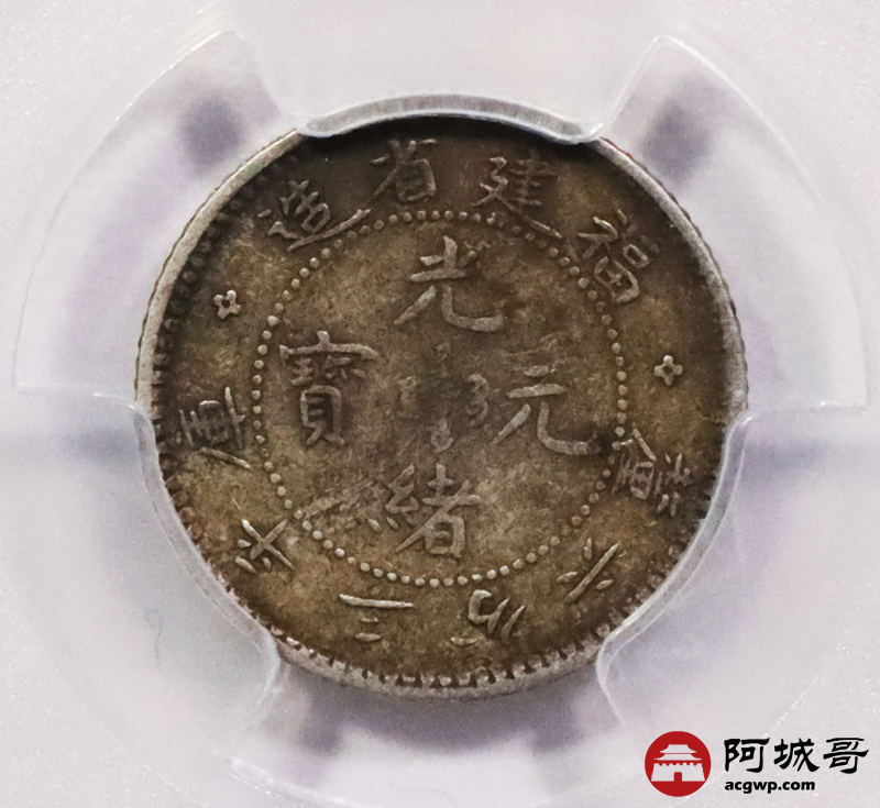 Lot:3602 1903-08福建省造光绪元宝库平三分六厘银币一枚,酱彩包浆 PCGS XF45