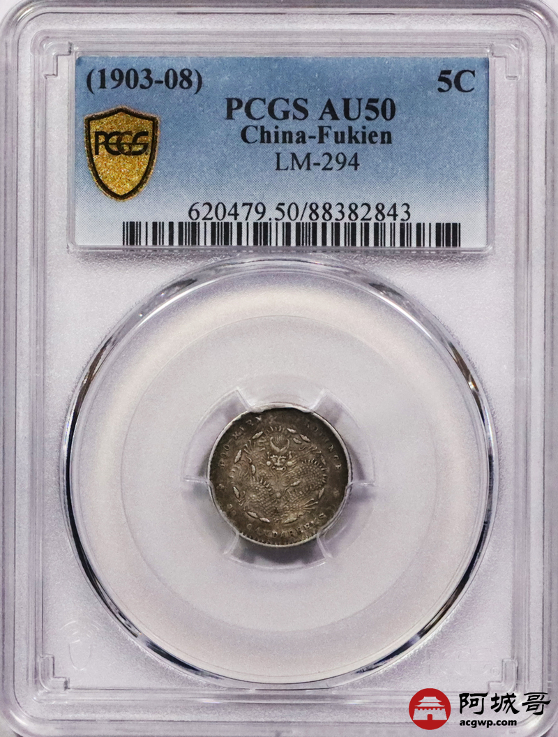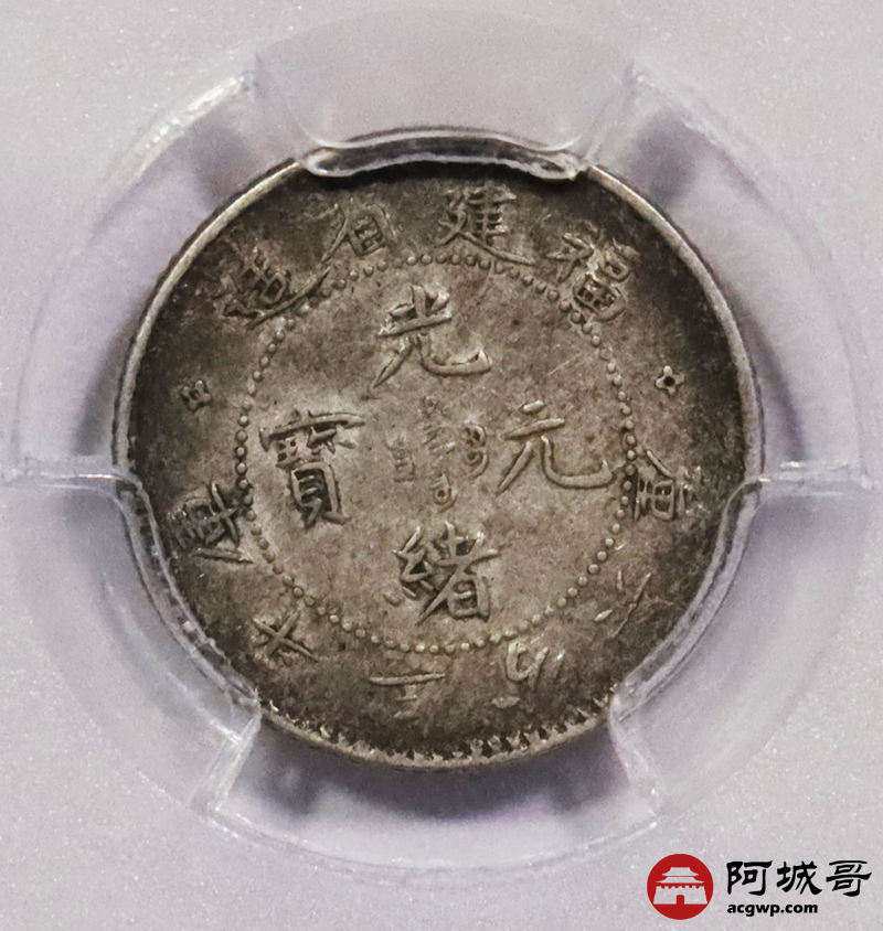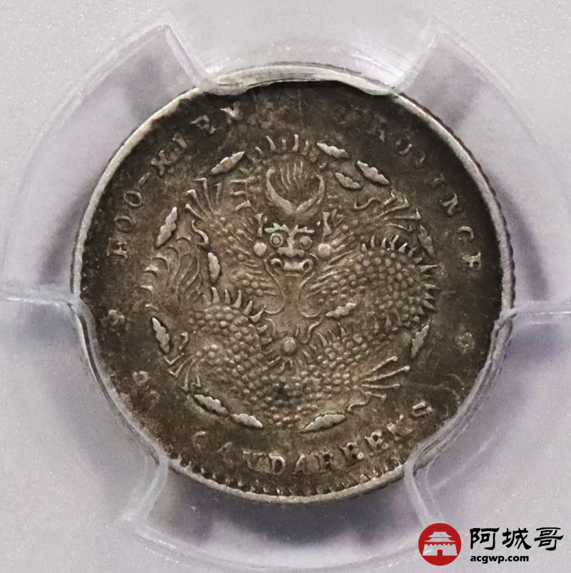 Lot:3603 1903-08福建省造光绪元宝库平三分六厘银币一枚,酱彩包浆 PCGS AU50