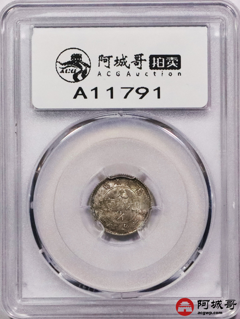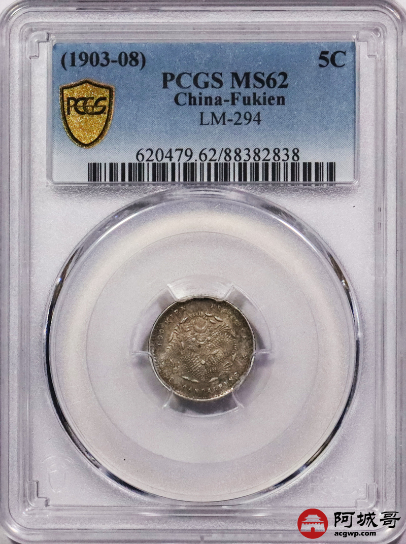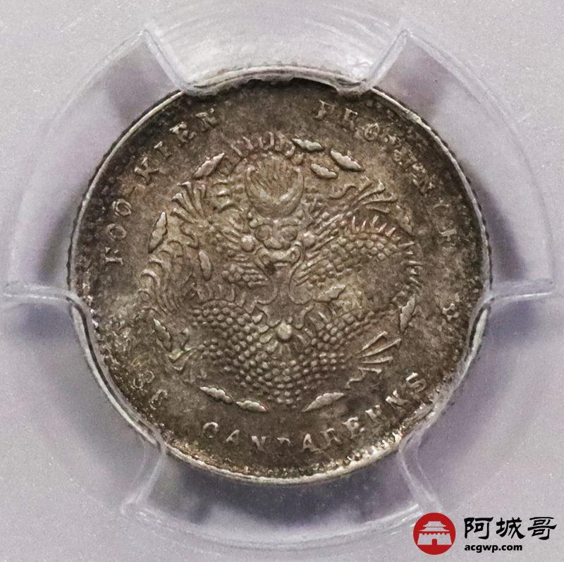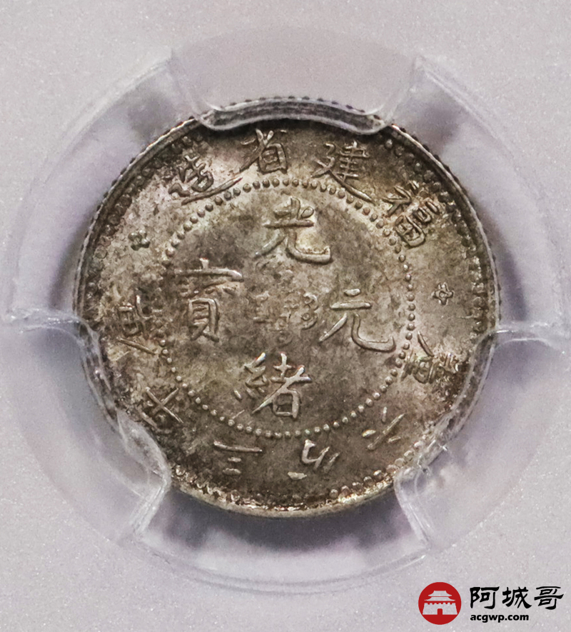 Lot:3598 1903-08福建省造光绪元宝库平三分六厘银币一枚,淡彩原光 PCGS MS62