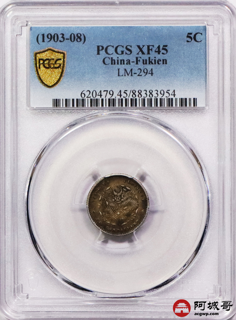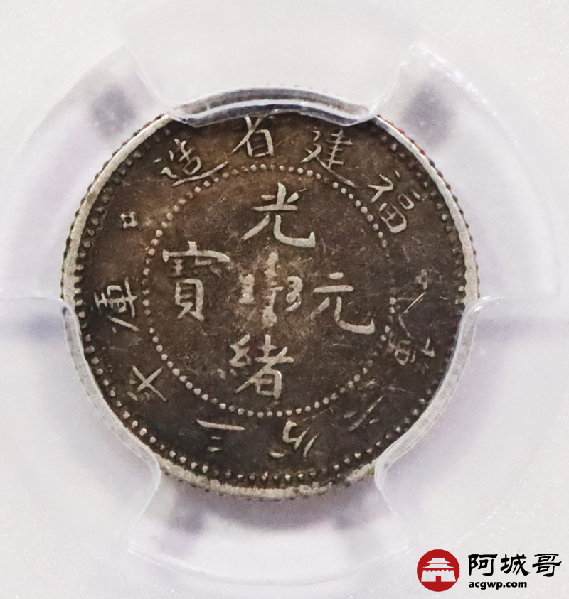 Lot:3600 1903-08福建省造光绪元宝库平三分六厘银币一枚,酱彩包浆 PCGS XF45