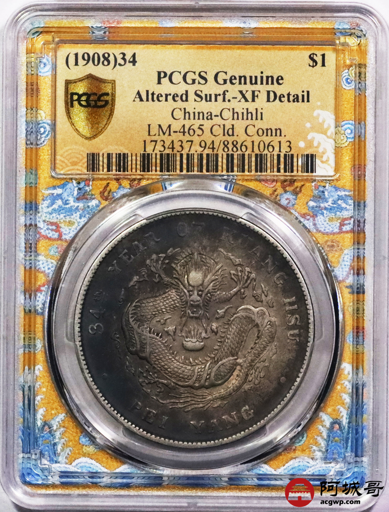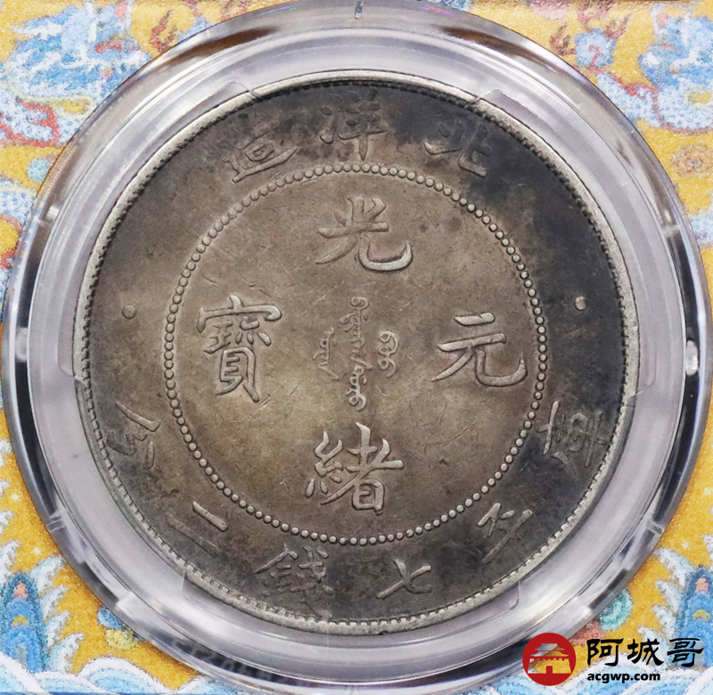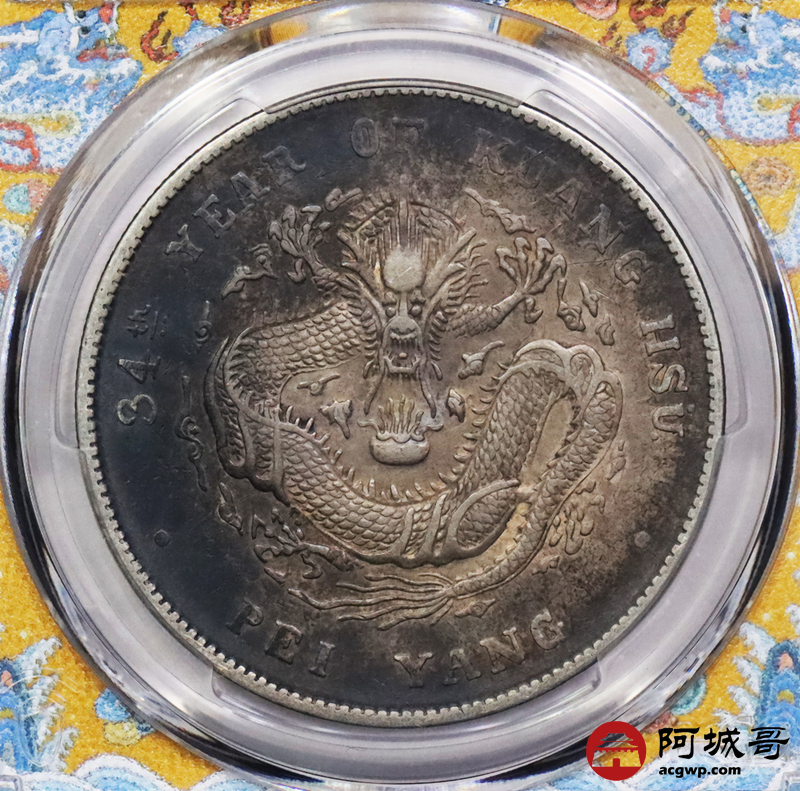 Lot:3322 1908三十四年北洋造光绪元宝库平七钱二分银币一枚,酱彩包浆 PCGS XF