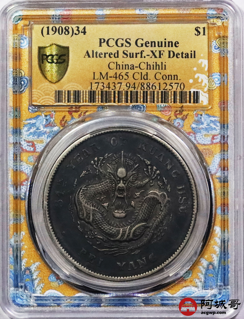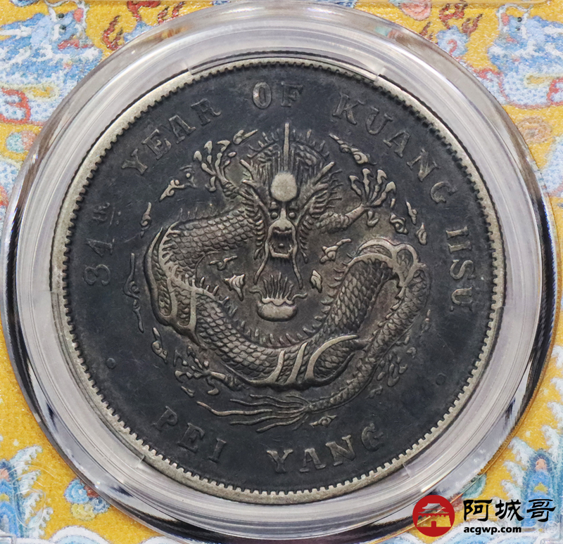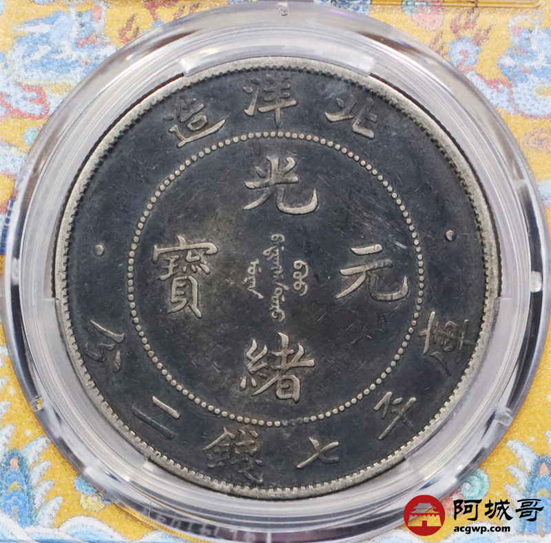 Lot:3319 1908三十四年北洋造光绪元宝库平七钱二分银币一枚,酱彩包浆 PCGS XF