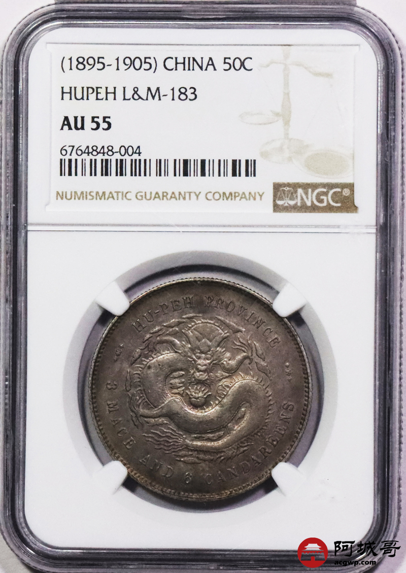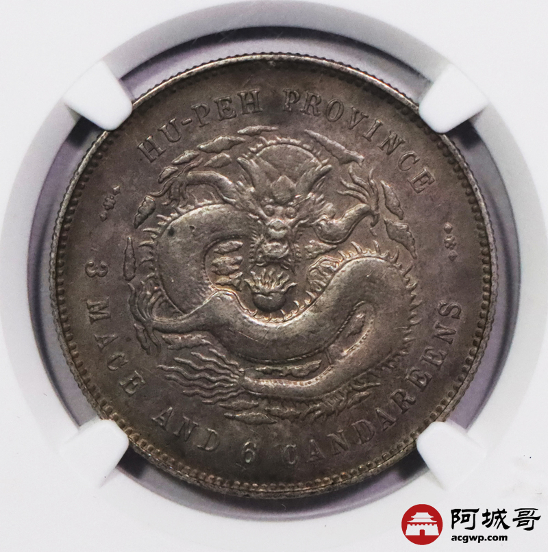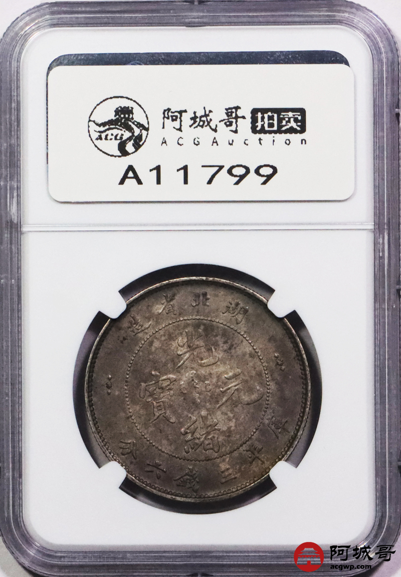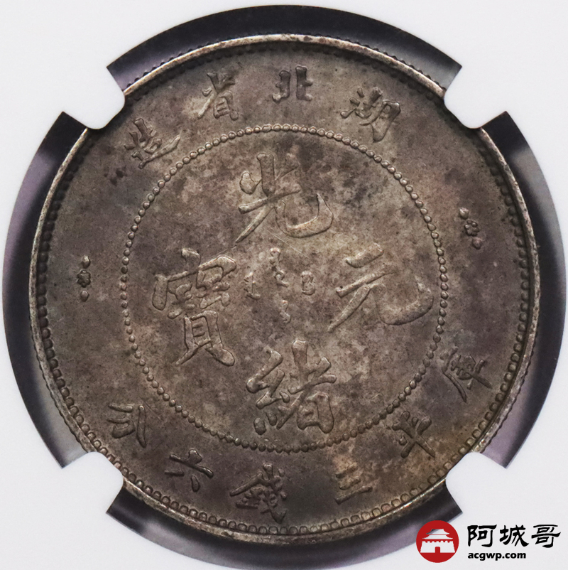 Lot:3080 1895湖北省造光绪元宝库平三钱六分银币一枚,双面酱彩包浆 NGC AU55