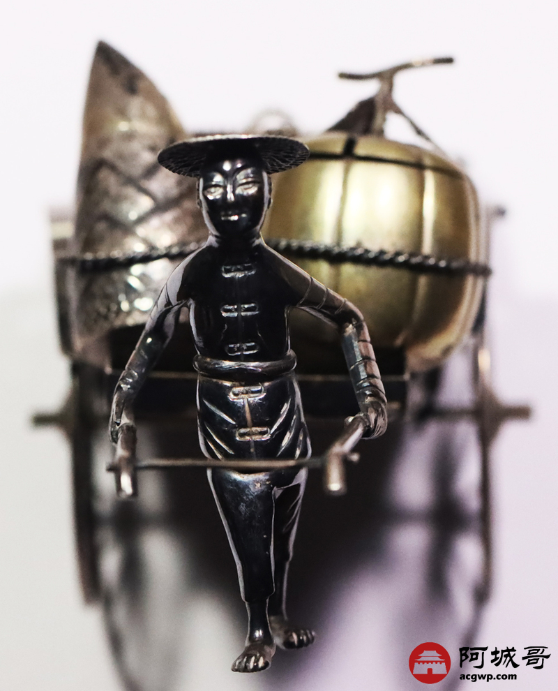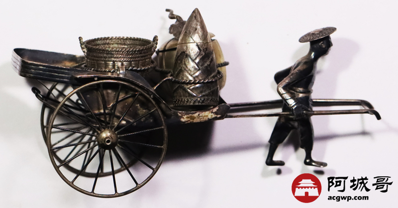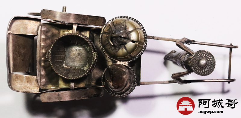 Lot:3858 清代广州十三行出口回流银制车形调味罐217.5g <广州十三行博物馆展品同款>