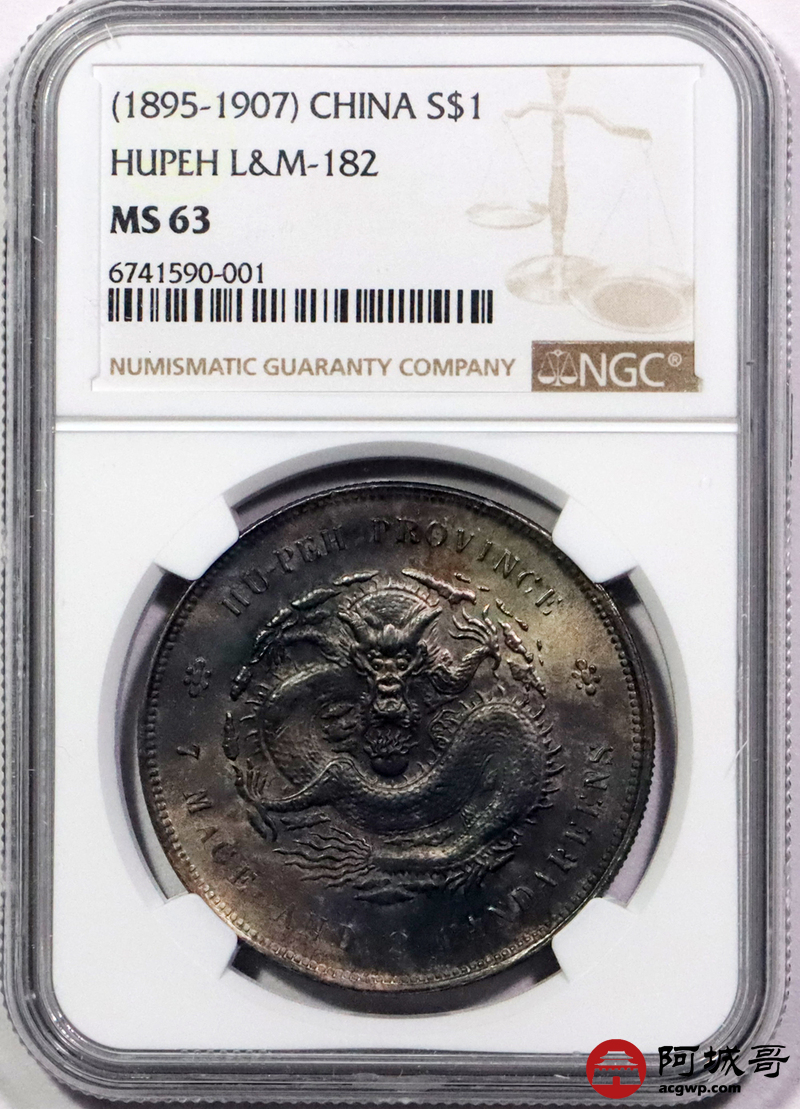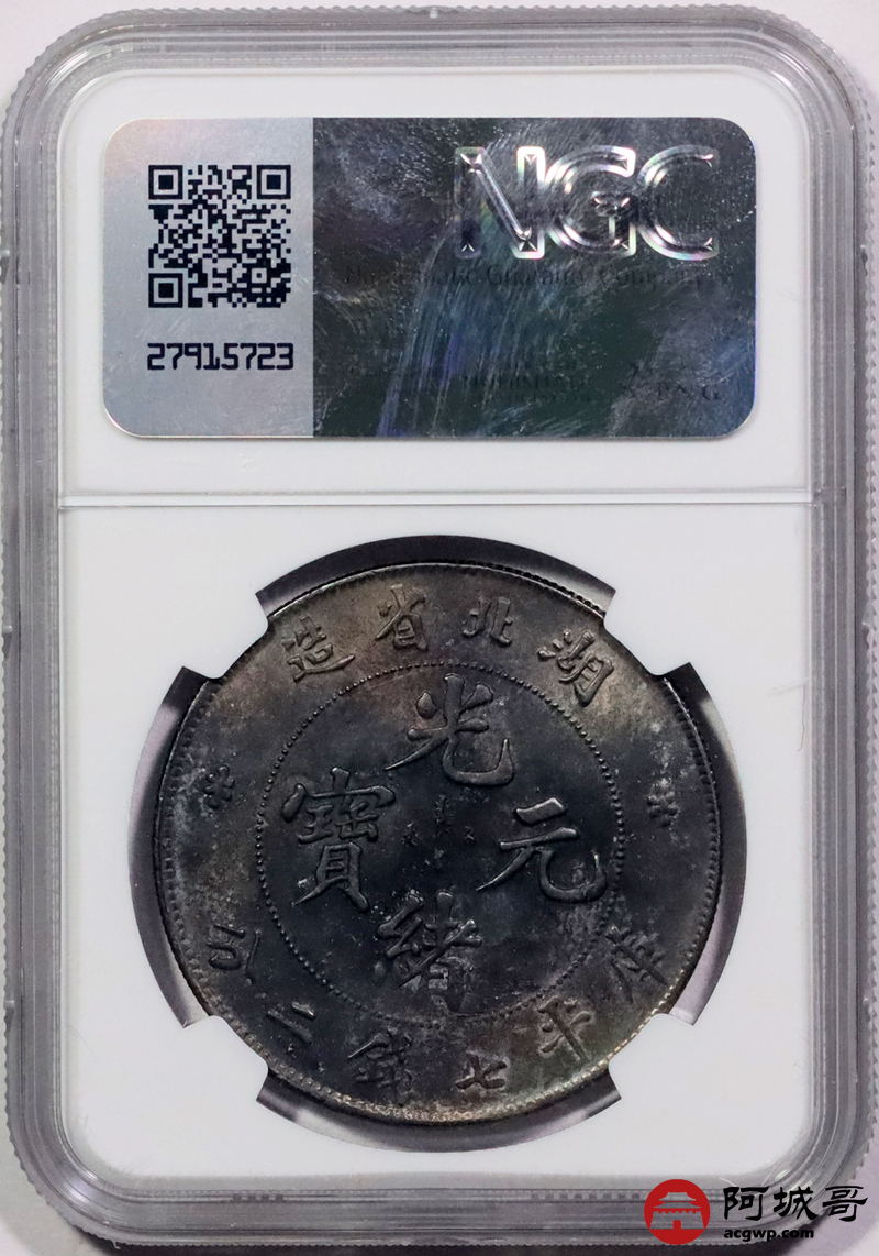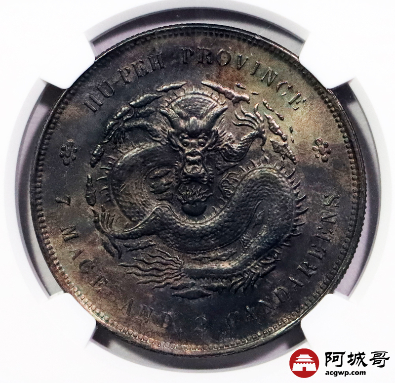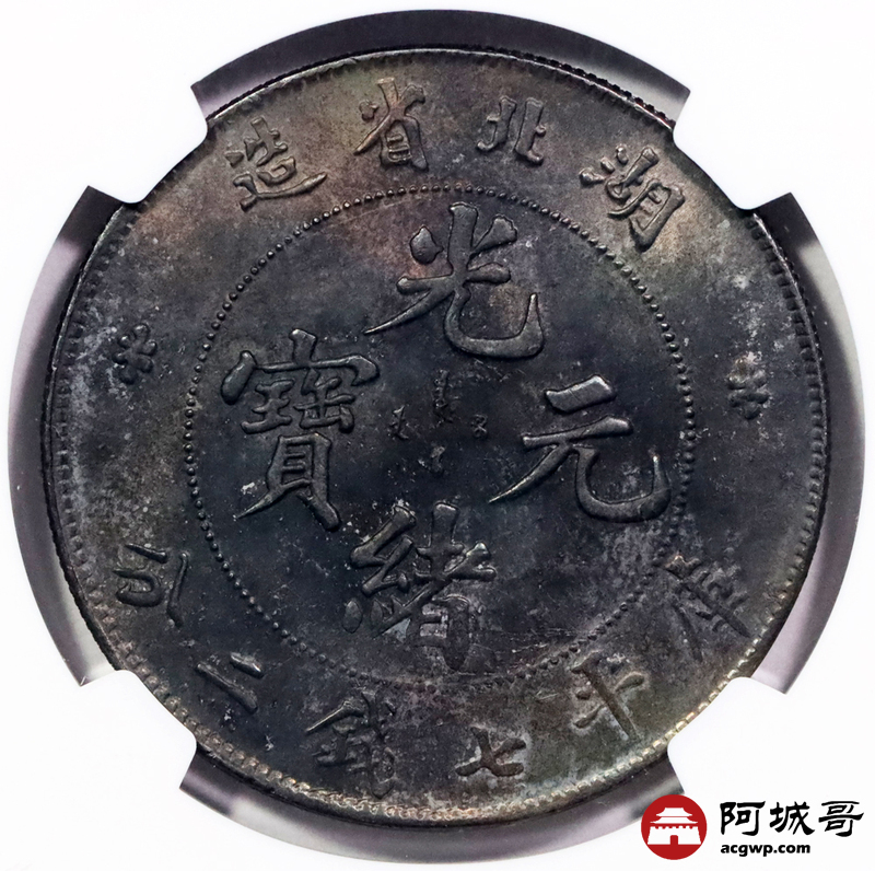 Lot:3352 1895-07湖北省造光绪元宝库平七钱二分银币一枚,原光状态,酱五彩包浆NGC MS63