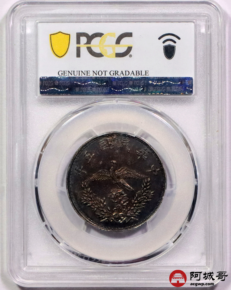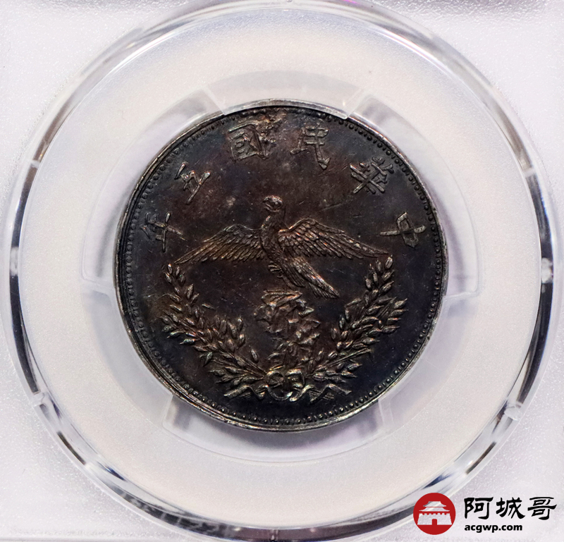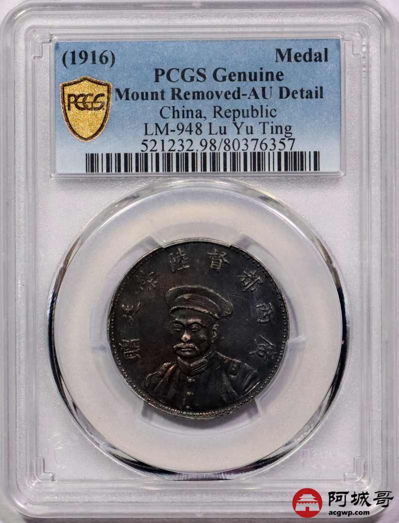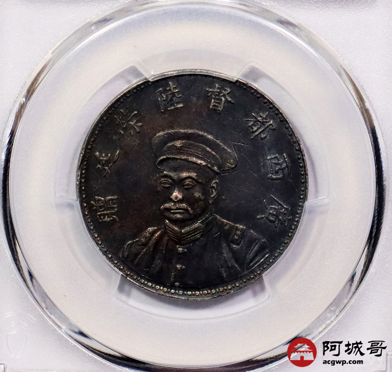 Lot:3218 1916民国五年广西都督陆荣廷增纪念银章一枚,五彩包浆,人像清晰PCGS AU