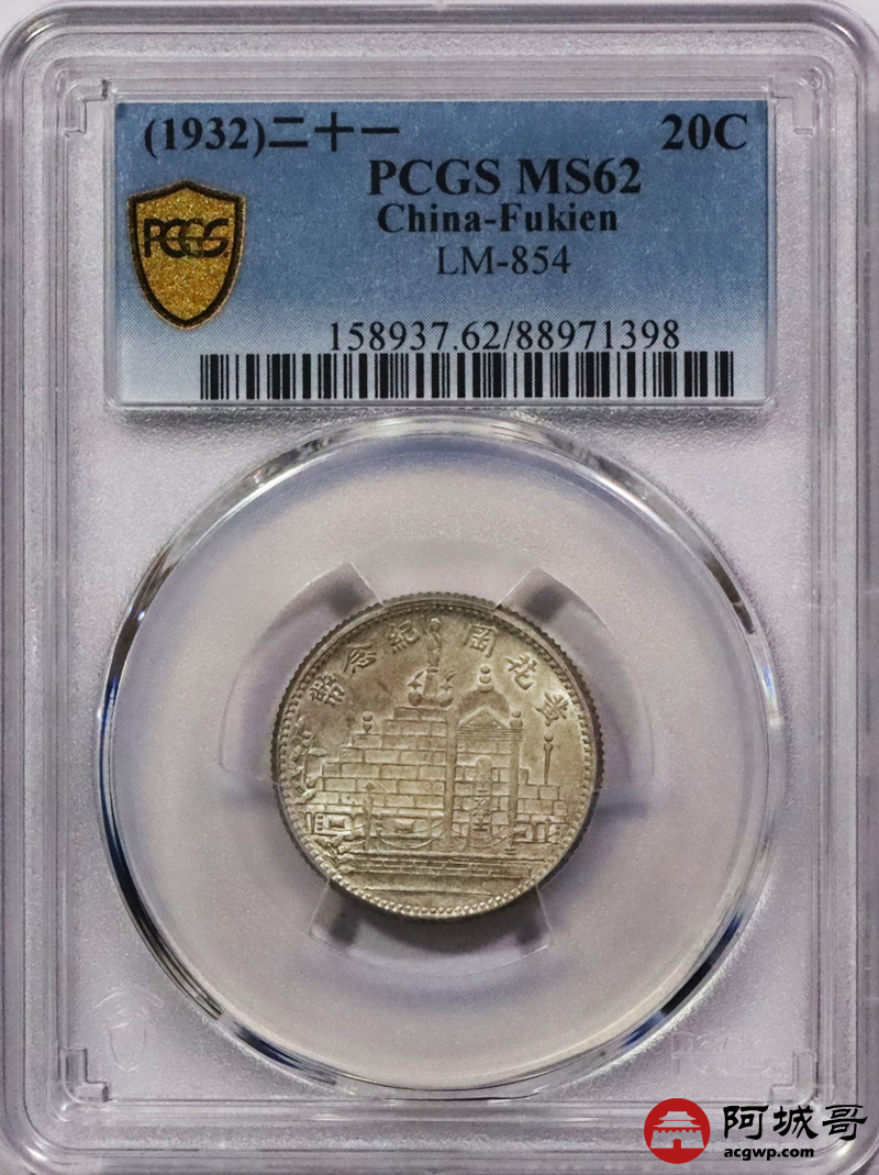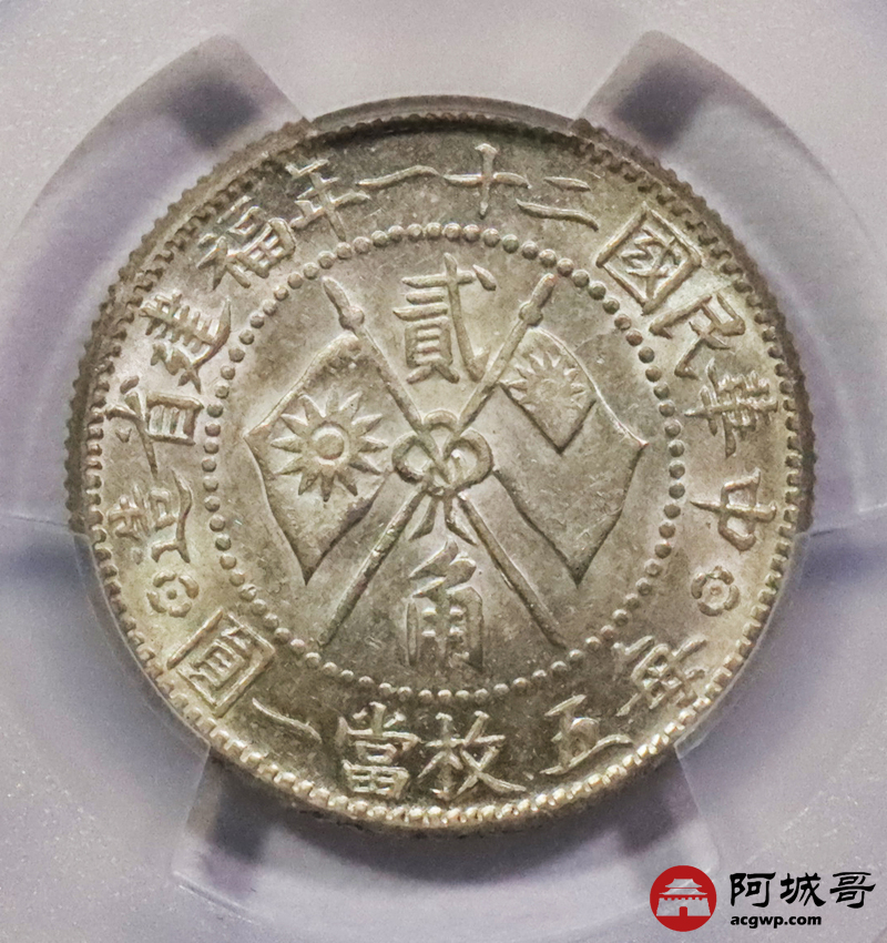 Lot:3215 1932民国二十一年福建省造黄花岗纪念贰角银币一枚,原光深打PCGS MS62