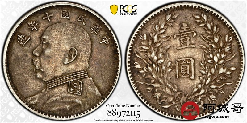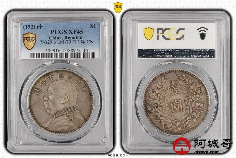 Lot:37 原味老包浆 十年大头壹圆 PCGS XF45