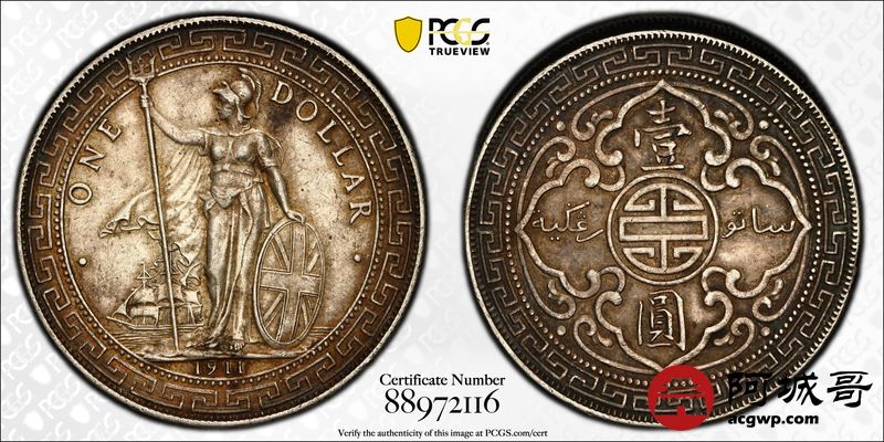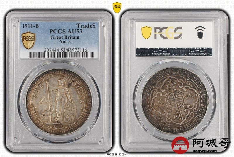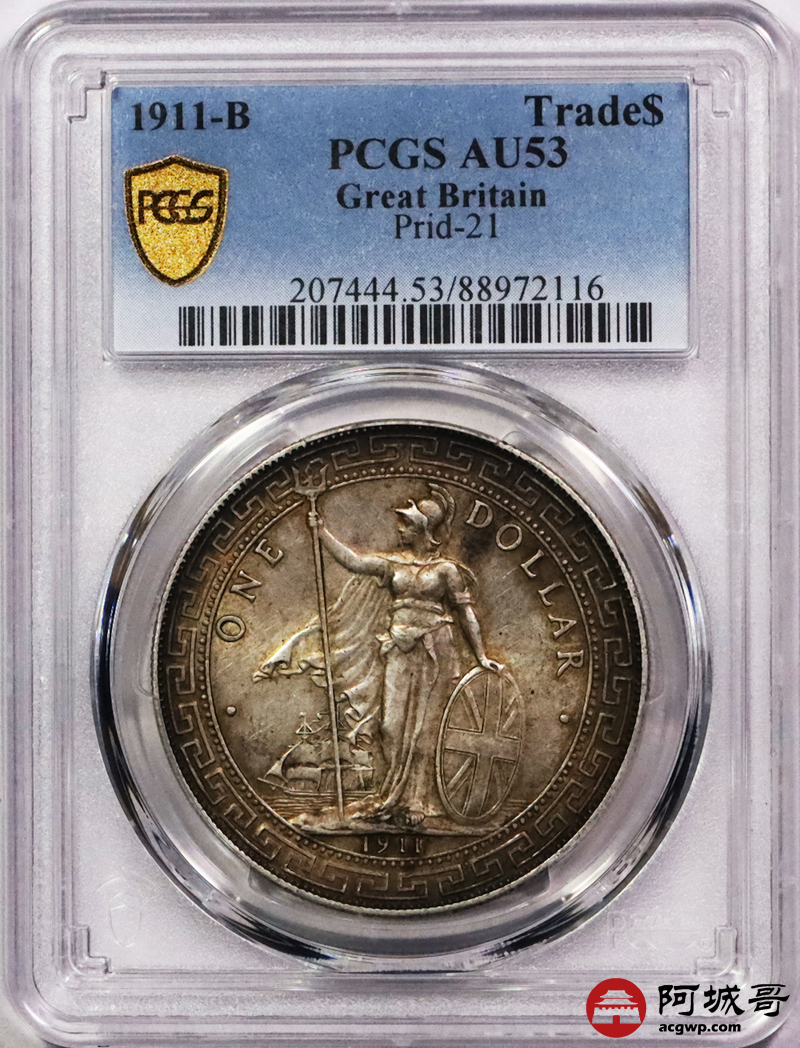 Lot:32 原味酱彩 1911B站洋壹圆 PCGS AU53