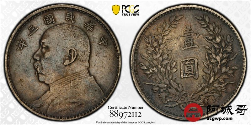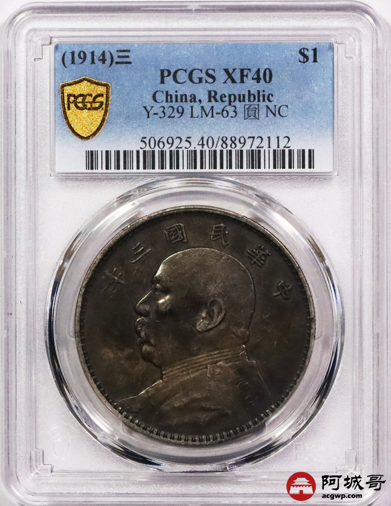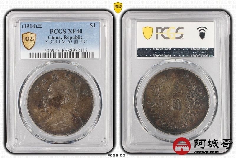 Lot:34 原味酱彩包浆 三年大头壹圆 PCGS XF40