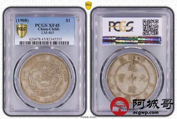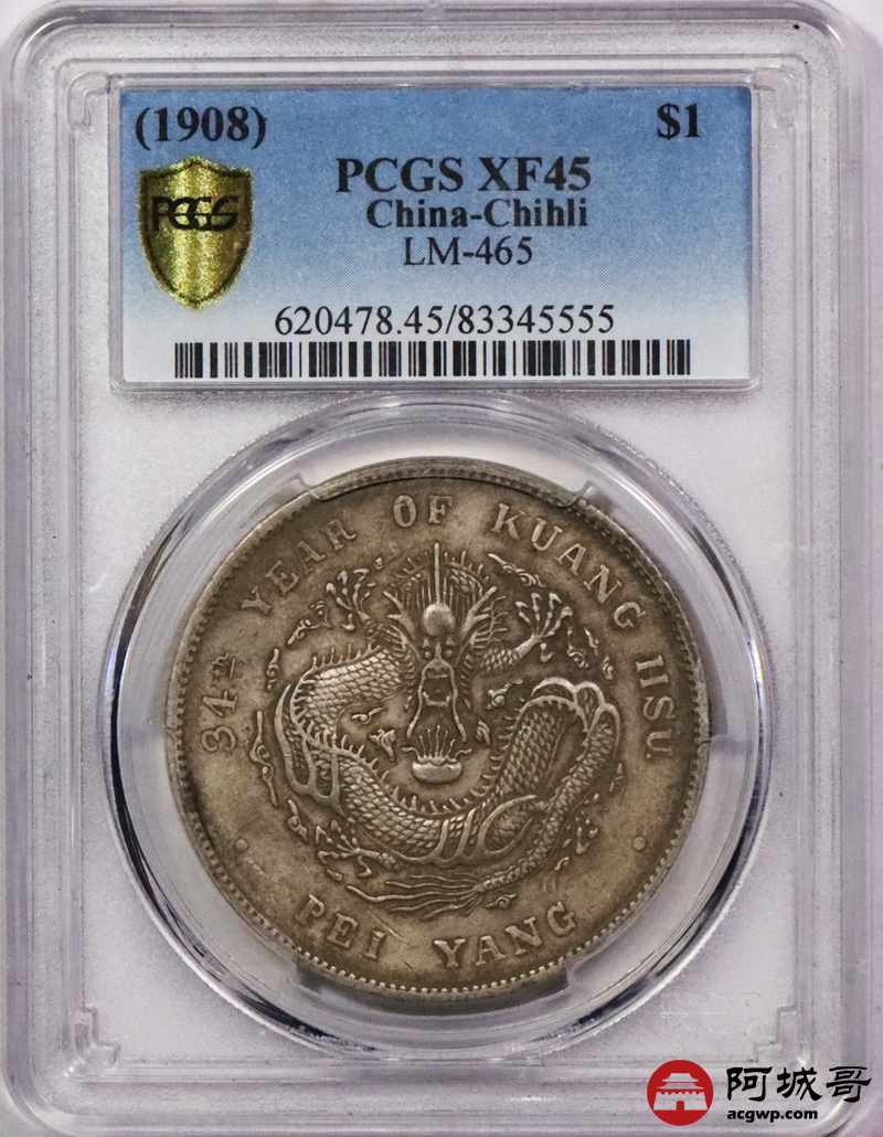 Lot:16 原汁原味 北洋34七钱二分 长尾短云 PCGS XF45