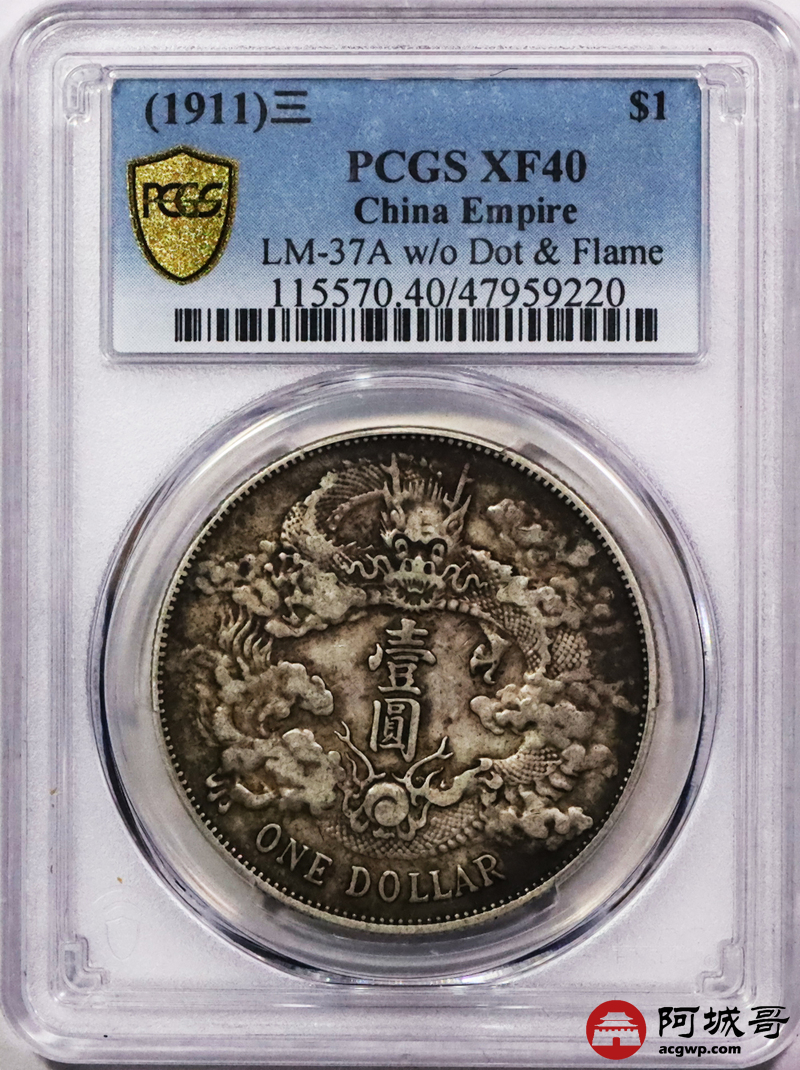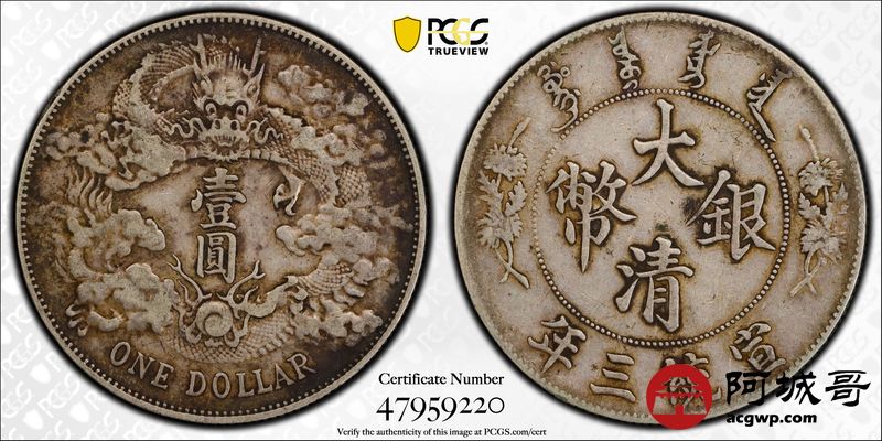 Lot:15 原味老包浆 大清宣三壹圆 PCGS XF40
