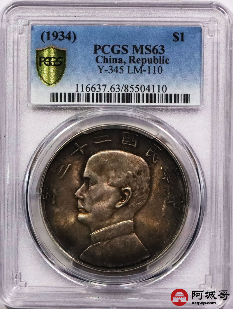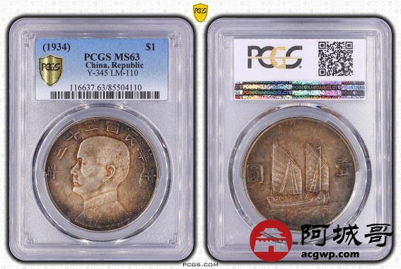 Lot:1 双面酱彩转光 二十三年船洋 PCGS MS63