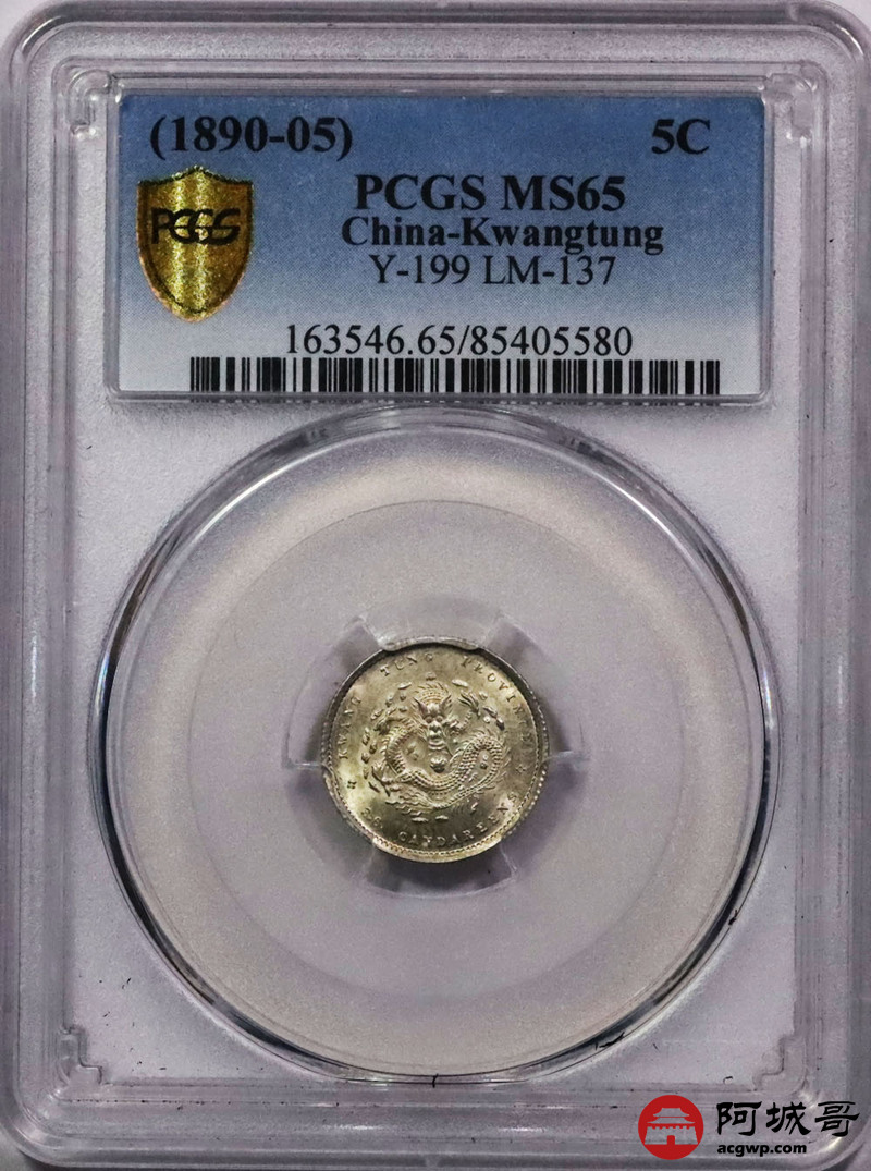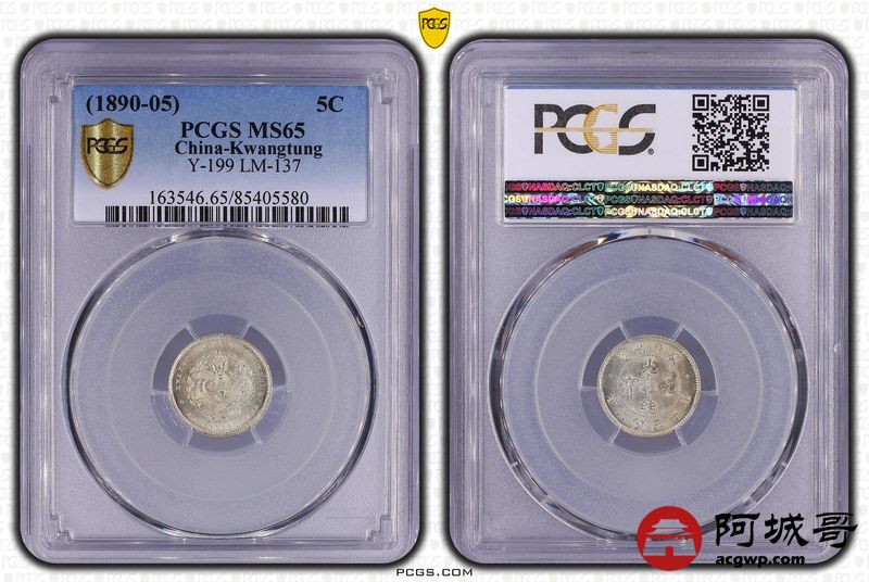 Lot:17 黄油原光 广东光绪三分六厘 PCGS MS65