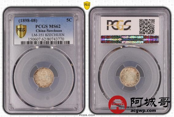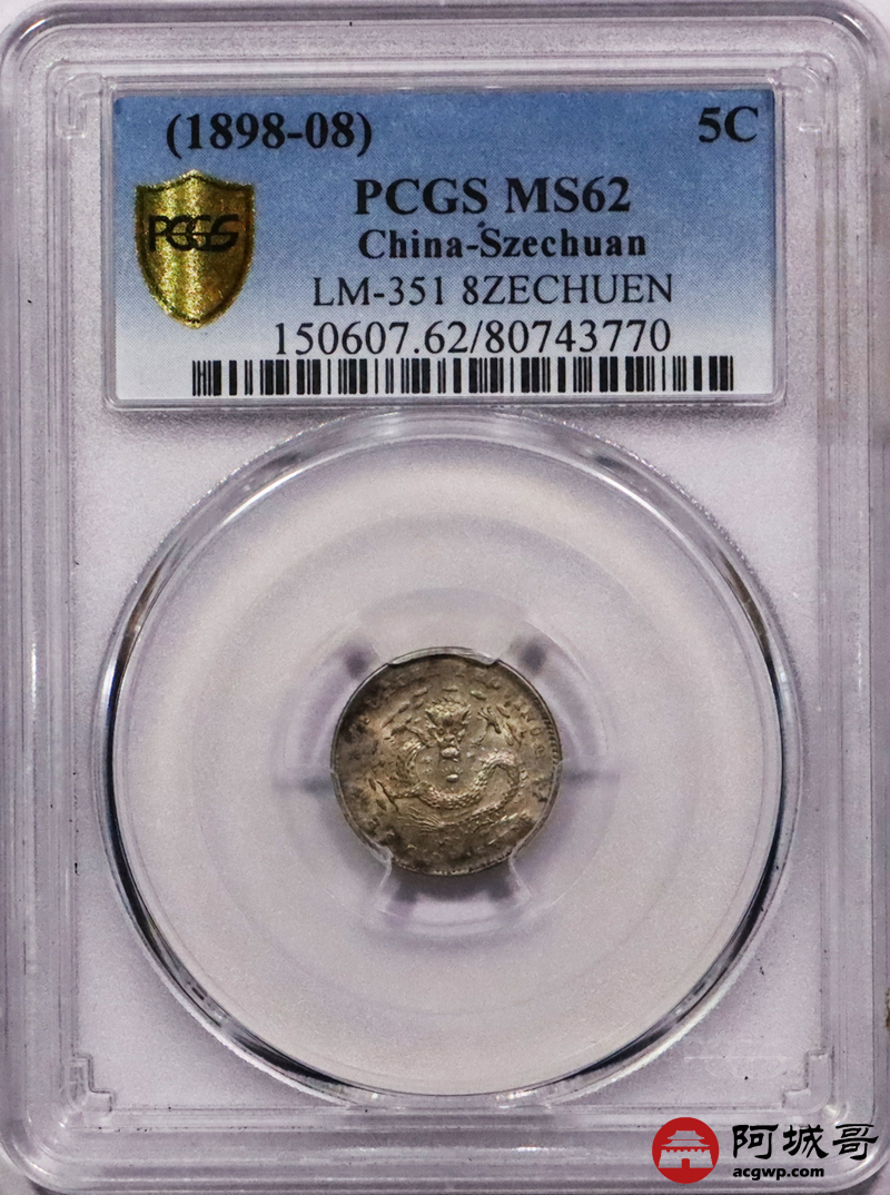 Lot:16 淡彩原光 四川光绪三分六厘 PCGS MS62