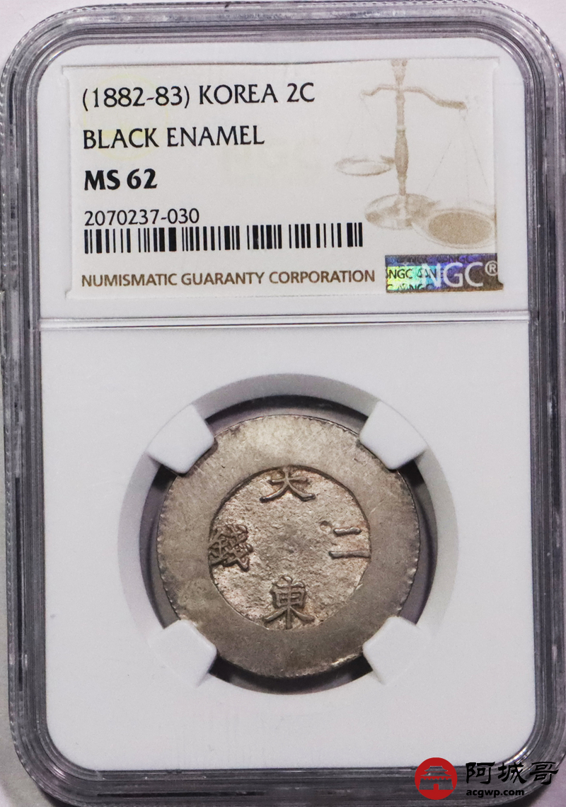 Lot:29 NGC-MS62 朝鲜1882年大东黑珐琅二钱银币 绝佳品相