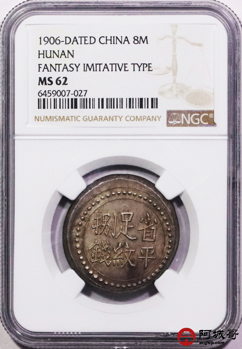 Lot:23 NGC MS62 湖南阜南官局 省平足纹八钱银饼臆造币