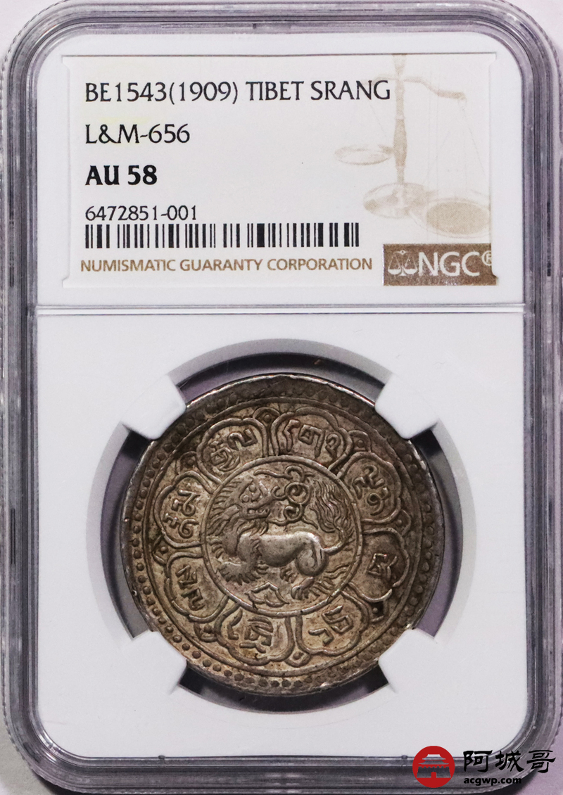 Lot:25 NGC AU58 1909年西藏大狮子桑康果木 酥油原味包浆