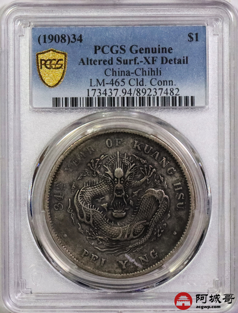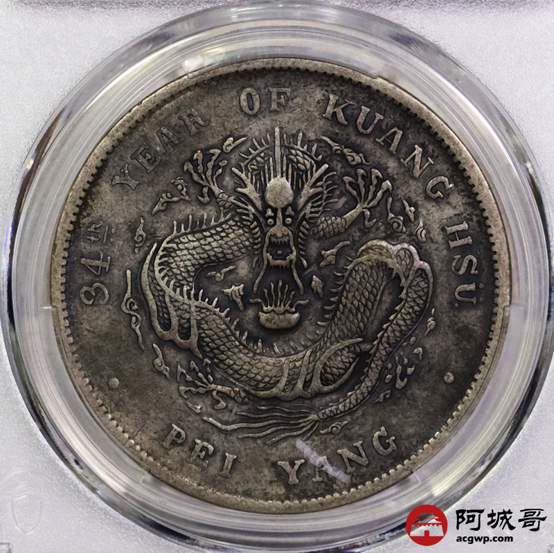 Lot:5544 1908光绪三十四年北洋造光绪元宝库平七钱二分银币一枚PCGS XF94评级编号:89237482