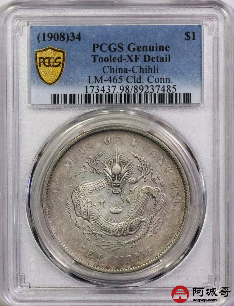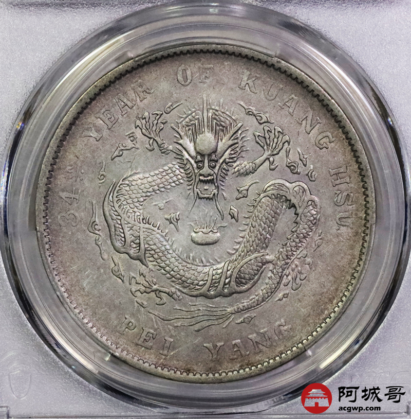Lot:5538 1908光绪三十四年北洋造光绪元宝库平七钱二分银币一枚PCGS XF98评级编号:89237485