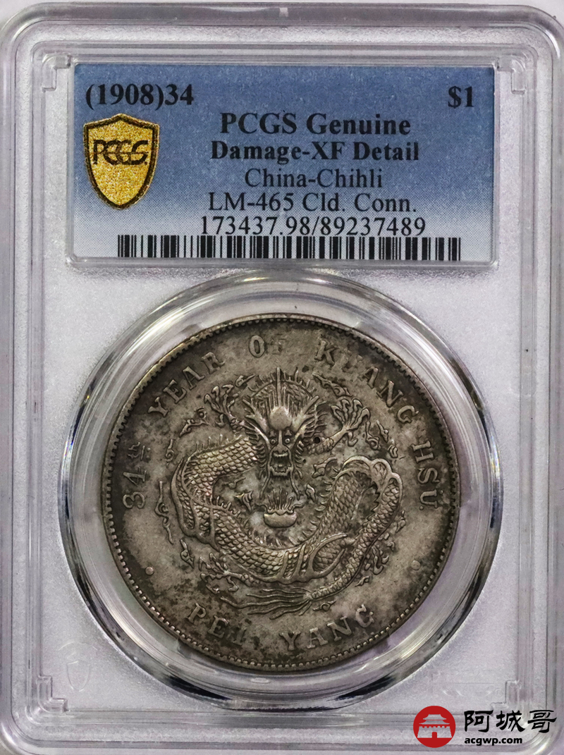 Lot:5539 1908光绪三十四年北洋造光绪元宝库平七钱二分银币一枚PCGS XF98评级编号:89237489