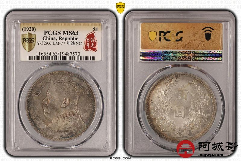 Lot:2 卷首五彩原光 九年中发壹圆 PCGS MS63