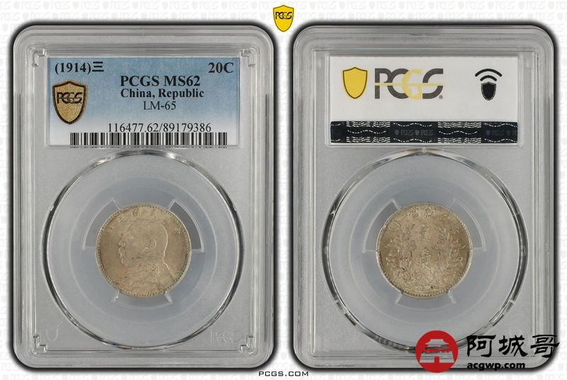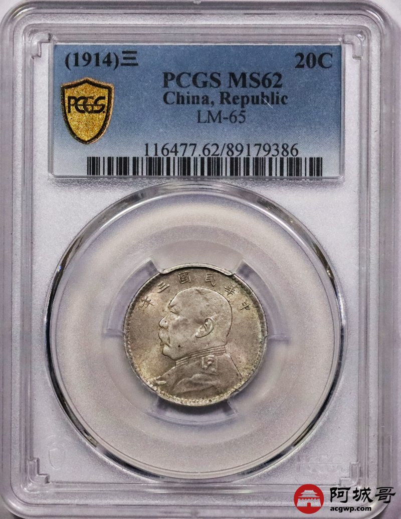 Lot:4 黄油原光三年大头贰角 PCGS MS62