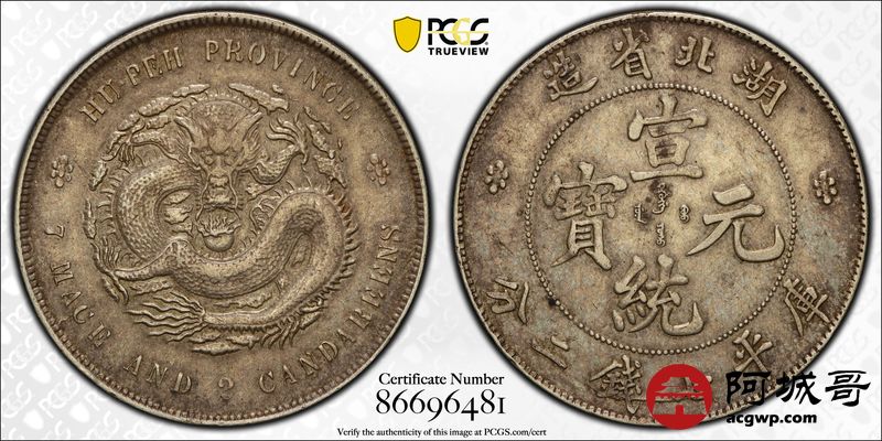 Lot:24 原味 底光 湖北宣统七钱二分 PCGS AU50
