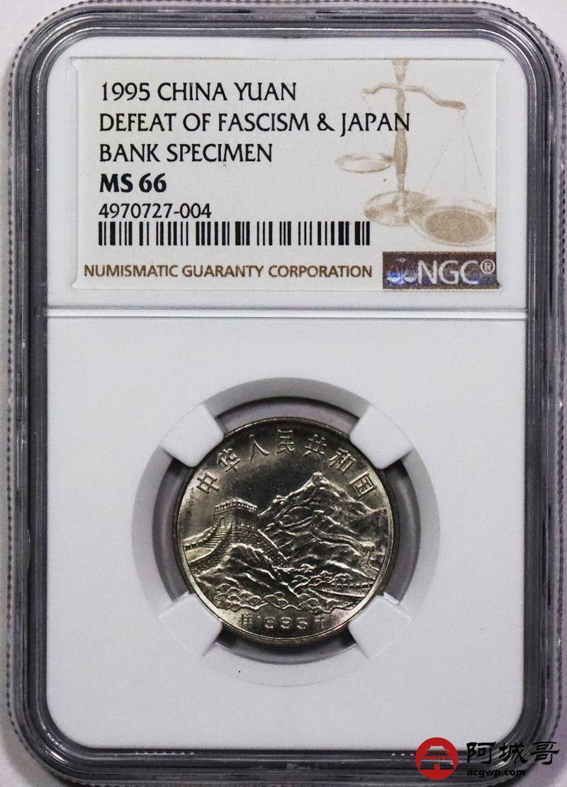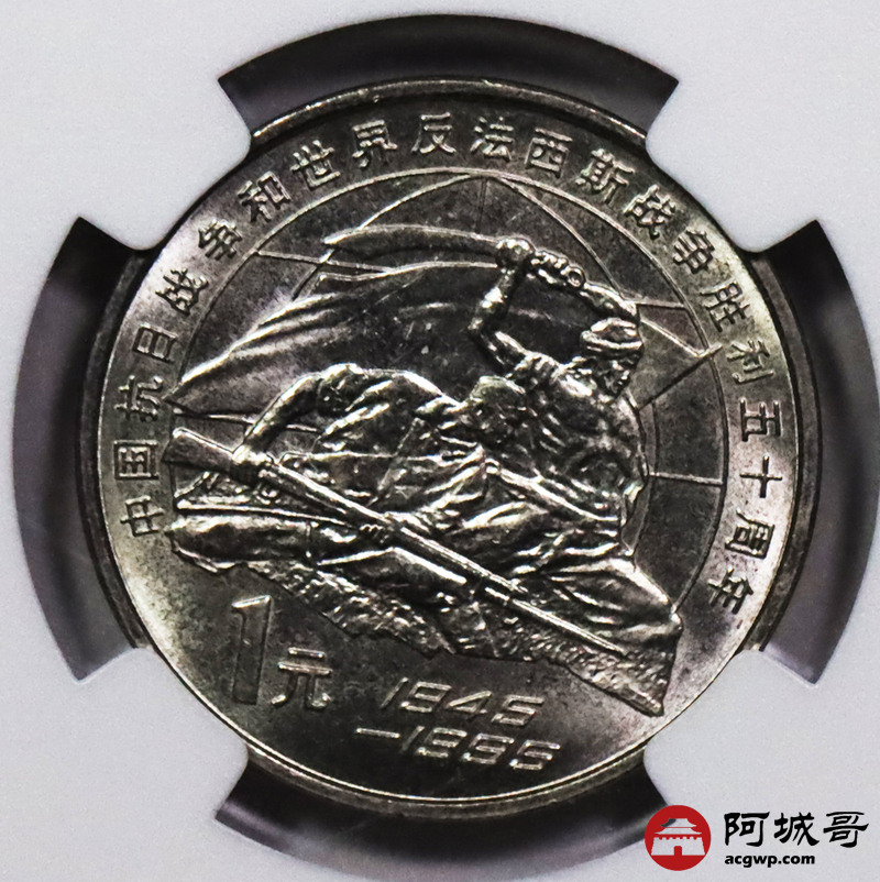 Lot:5 1995世界反法西斯战争50周年纪念壹圆 样币 NGC MS66
