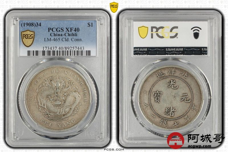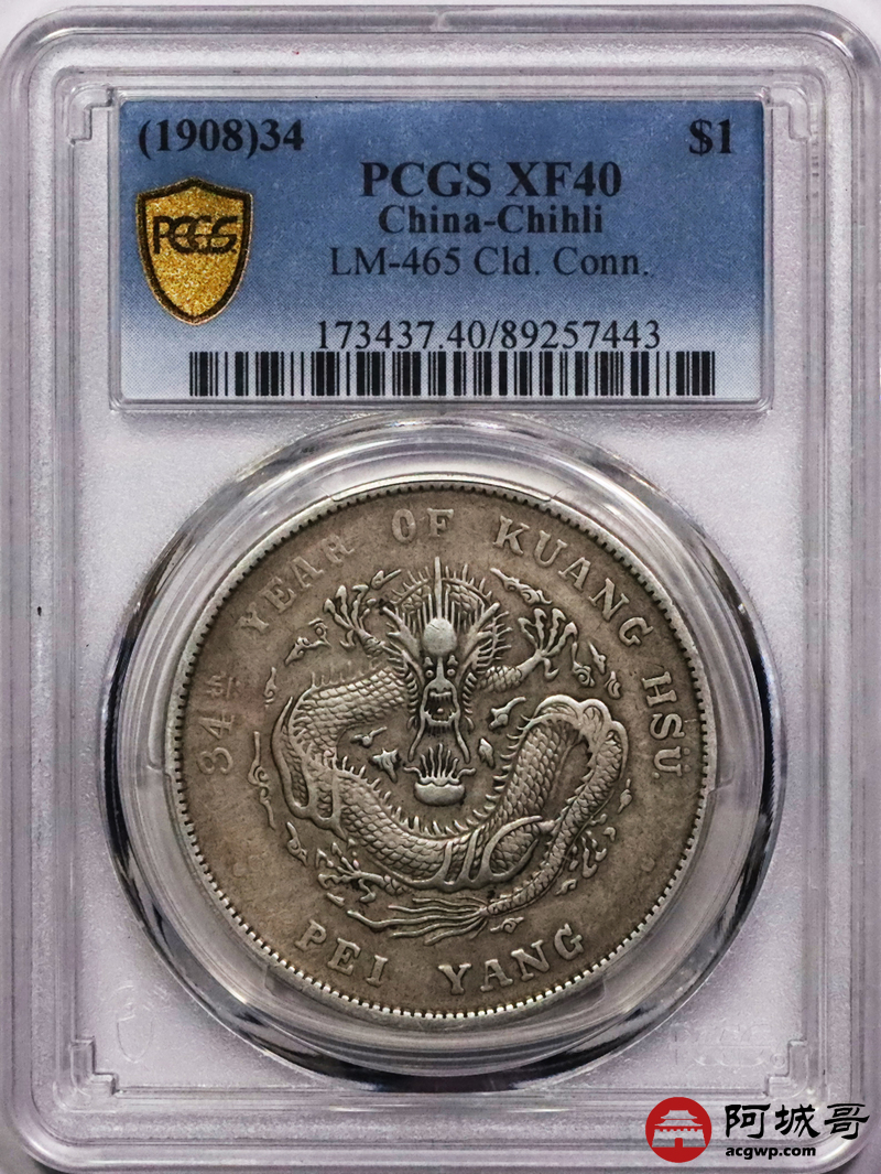 Lot:23 原味 北洋34年七钱二分 PCGS XF40