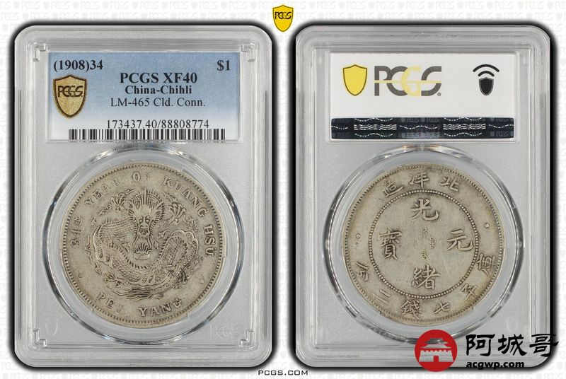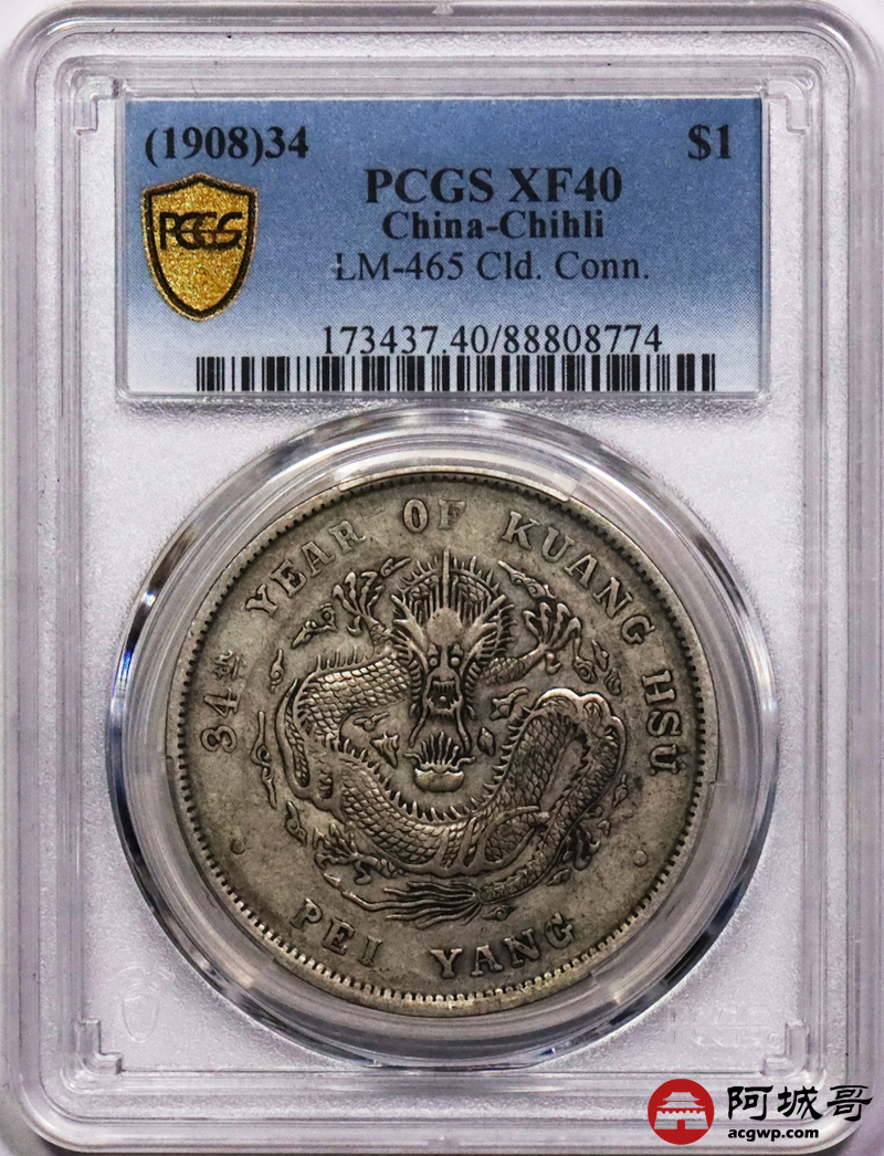 Lot:30 原味 北洋34年七钱二分 PCGS XF40